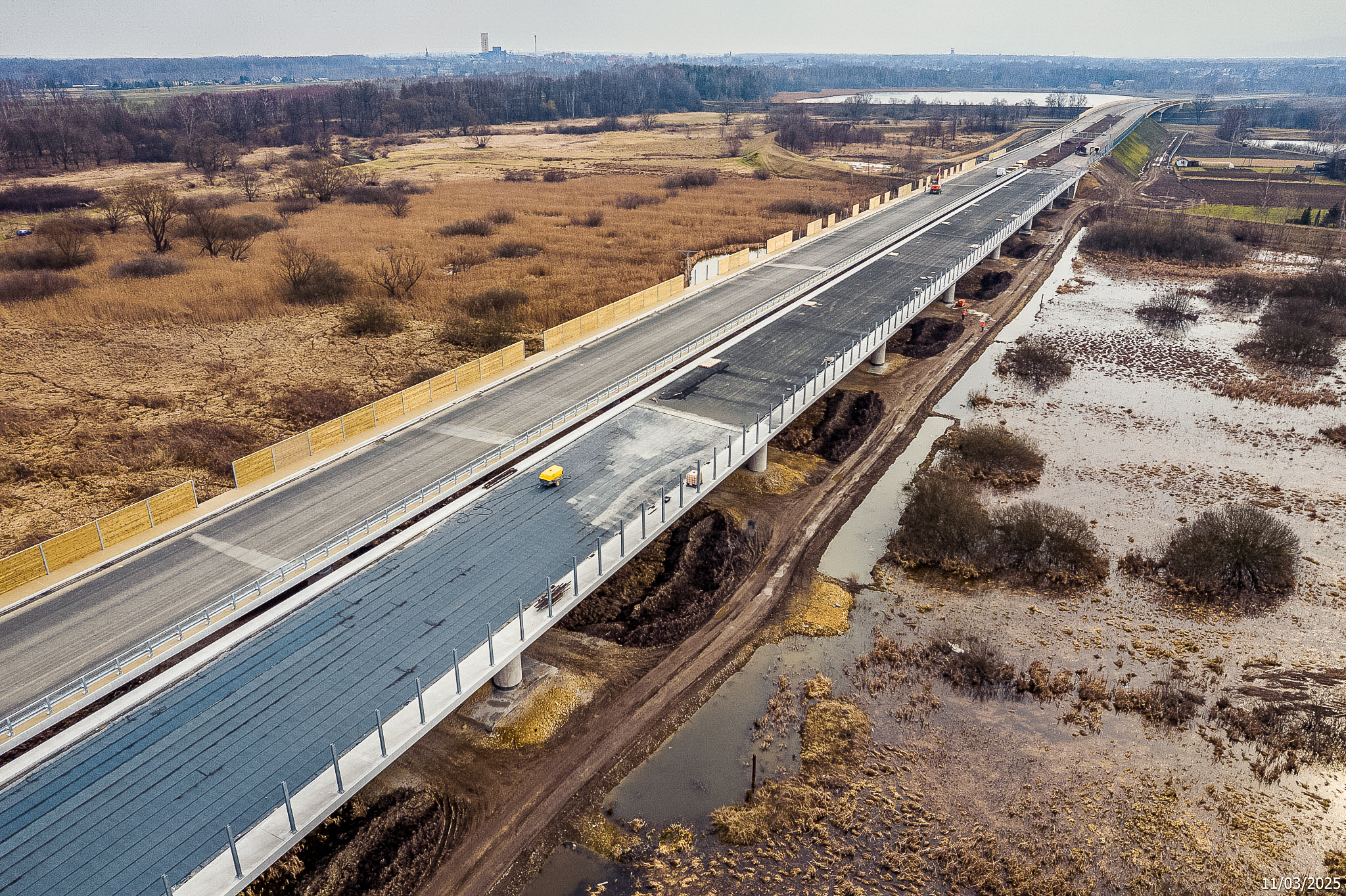 Umowna data zakończenia robót przypadała na 30 września 2024 r. Jednakże z uwagi na roszczenia terminowe wykonawcy, złożone w oparciu o niesprzyjające warunki pogodowe i ich skutki, a także powódź, która miała miejsce we wrześniu 2024 r., szacujemy, że zakończenie robót i oddanie do użytkowania tego odcinka będzie możliwe w IV kwartale 2025 r. Obecnie zaawansowanie prac dochodzi do 80 proc.