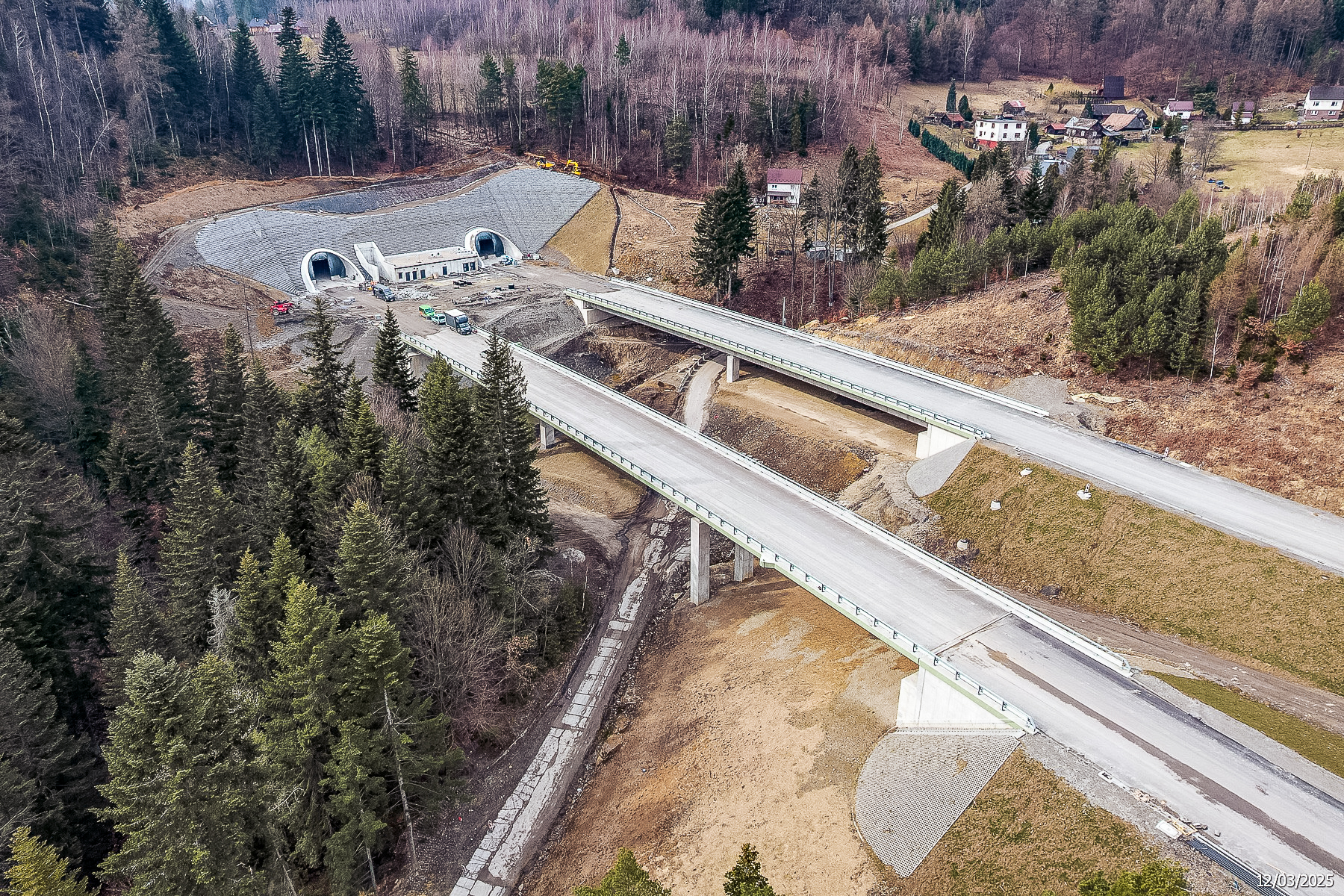Od października 2019 r. trwa budowa najbardziej skomplikowanego odcinka nowej S1, ostatniego w południowej części tej trasy między Bielskiem-Białą a Zwardoniem. Na 8,5 km pomiędzy Milówką a Przybędzą, niemal połowę długości stanowią obiekty inżynierskie - dwa, dwunawowe tunele o długości 830 i 1000 m oraz prawie kilometrowa estakada. Zaawansowanie prac na tym odcinku przekroczyło już 90 proc. i wykonawca deklaruje oddanie go do ruchu pod koniec 2025 r. Wartość umowy to blisko 1,4 mld zł.