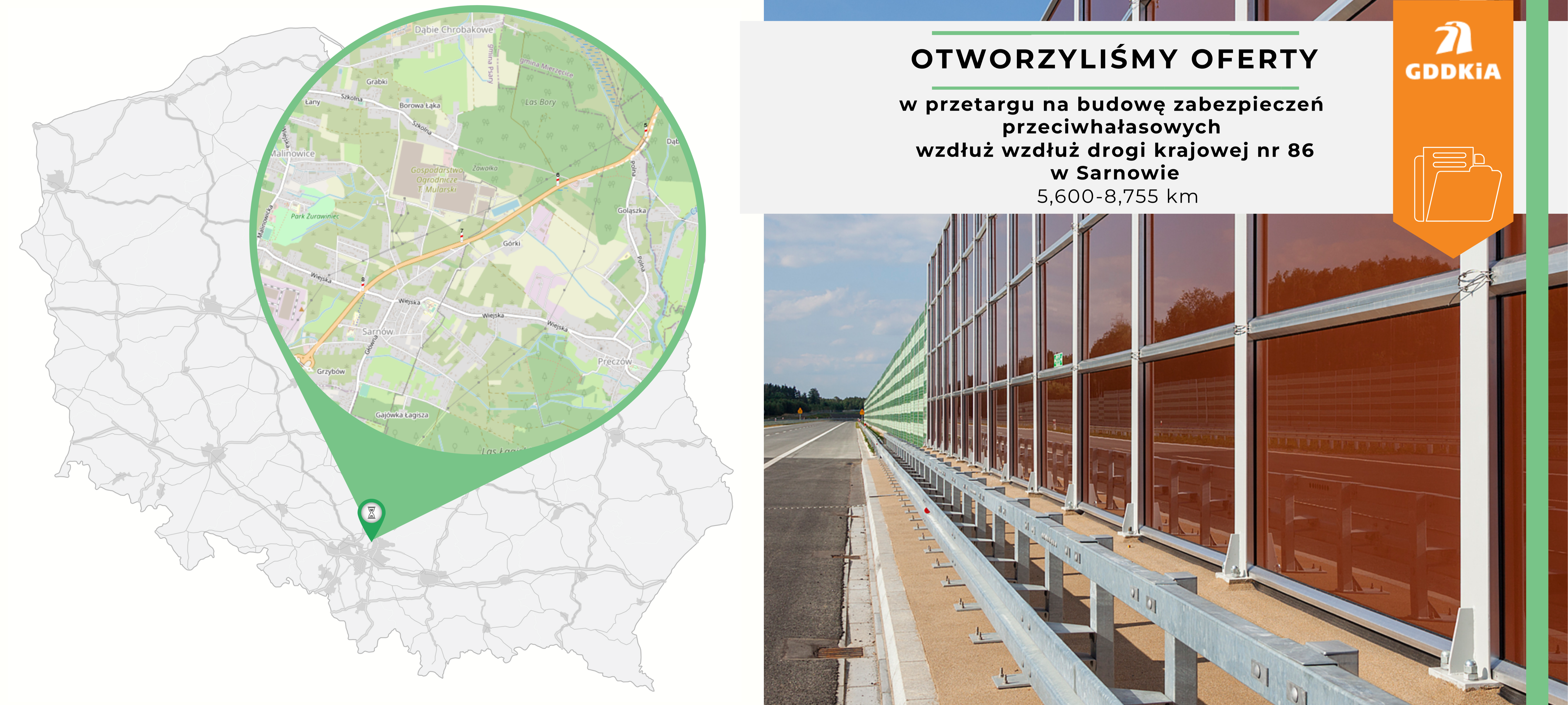 Zaprojektowanie budowy zabezpieczeń przeciwhałasowych wzdłuż DK86 w Sarnowie
