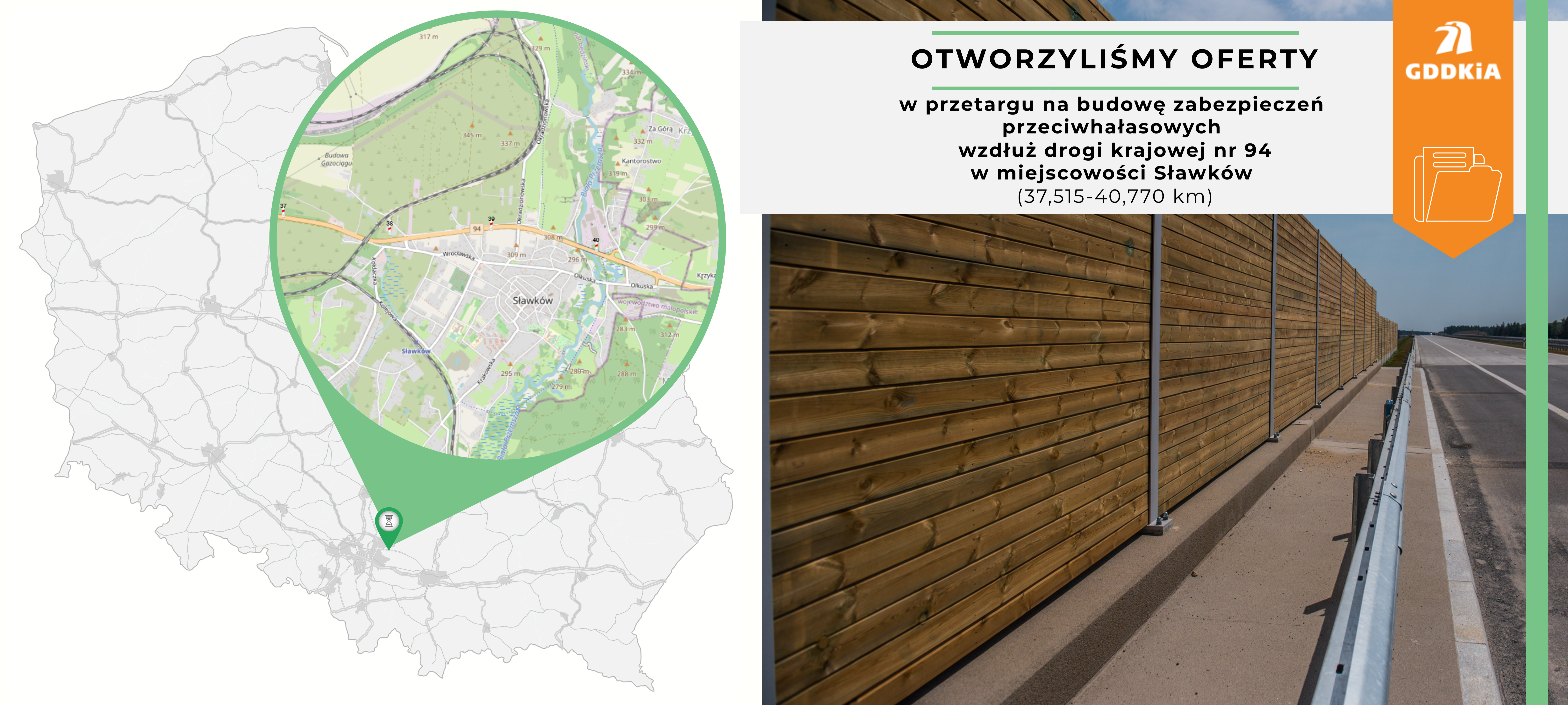 Zaprojektowaniem budowy zabezpieczeń przeciwhałasowych wzdłuż DK94 w Sławkowie były zainteresowane dwie firmy. Firma Multiconsult z Warszawy zaproponowała wykonanie dokumentacji za 602 700 zł, natomiast Pracownia Inżynierska Klotoida za 792 612 zł. GDDKiA zamierzała przeznaczyć na sfinansowanie tej dokumentacji 594 715,78 zł.