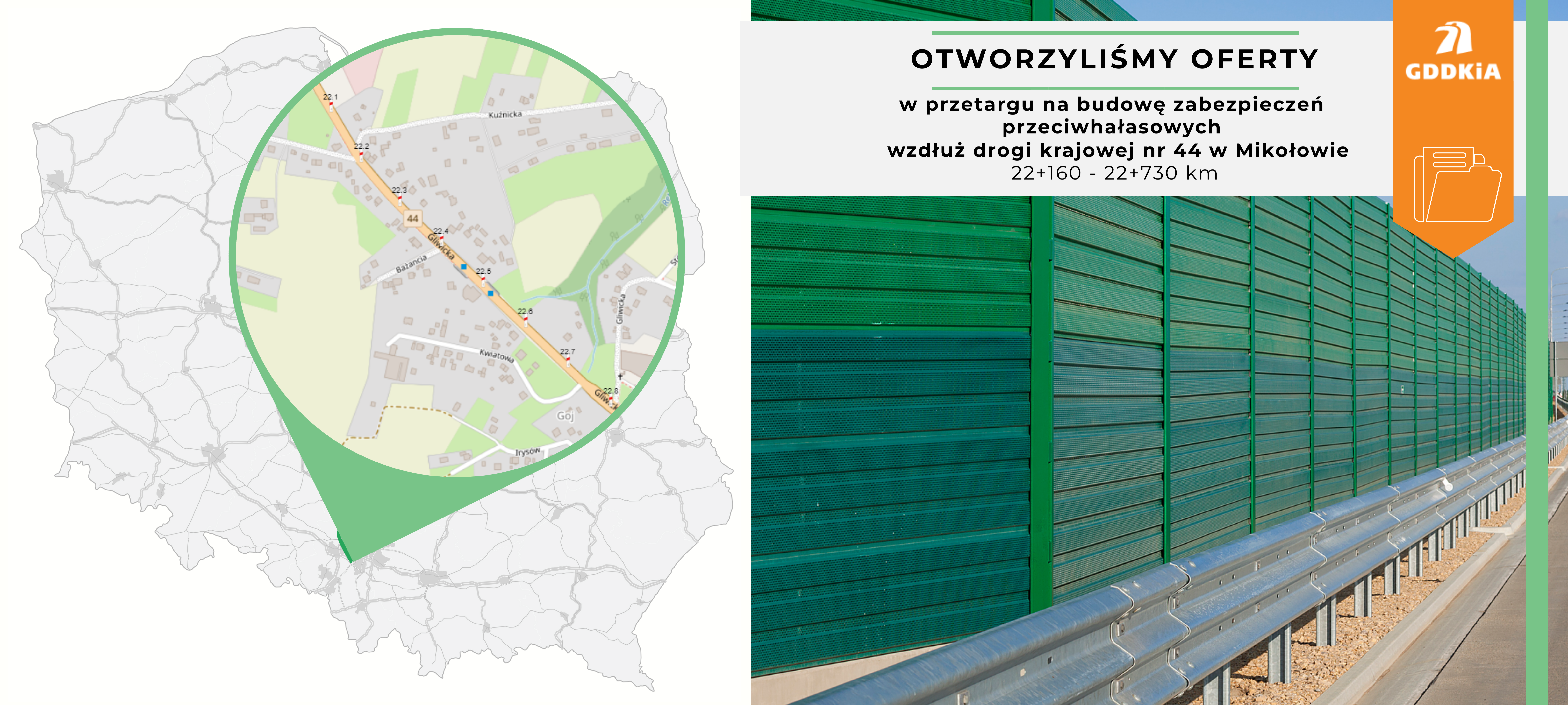 Zaprojektowanie budowy zabezpieczeń przeciwhałasowych wzdłuż DK44 od km 22+160 do km 22+730 w Mikołowie