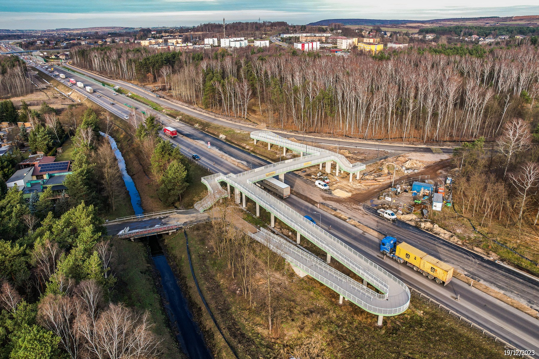 Niezależnie od prac na węźle Pogoria wykonawca będzie kontynuował roboty budowalne związane z dokończeniem trasy głównej przyszłej drogi S1 oraz dróg przyległych do niej. Zaawansowanie prac przekroczyło już 80 proc. Do zakończenia inwestycji pozostało przede wszystkim wykonanie warstwy ścieralnej - ostatniej warstwy asfaltowej na jezdni głównej oraz niektórych przyległych dróg. Łącznie do wbudowania pozostało 26 000 ton nawierzchni, co przy sprzyjających warunkach atmosferycznych powinno zająć ok. 60 dni roboczych. Realizacja prac asfaltowych będzie możliwa po uruchomieniu wytwórni mas mineralno-asfaltowych oraz wystąpieniu dłuższego okresu korzystnych warunków atmosferycznych. Kontynuujemy także roboty brukarskie oraz montaż ekranów akustycznych. Z 3871 mb całego zakresu do wykonania pozostało jeszcze ok. 2700 mb ekranów. Ponadto trwa budowa oświetlenia drogowego, barier energochłonnych, wygrodzenia, a także urządzeń bezpieczeństwa ruchu drogowego. Całość zakończy wykonanie oznakowania pionowego i poziomego. Te prace będą trwały do czerwca 2024 r. Ich zakończenie pozwoli na uruchomienie w pełni funkcjonalnego dwujezdniowego odcinka drogi ekspresowej pomiędzy węzłami Podwarpie i Pogoria. Na tym ostatnim, w rejonie budowanego wiaduktu, będzie punktowo występowało ograniczenie ruchu.