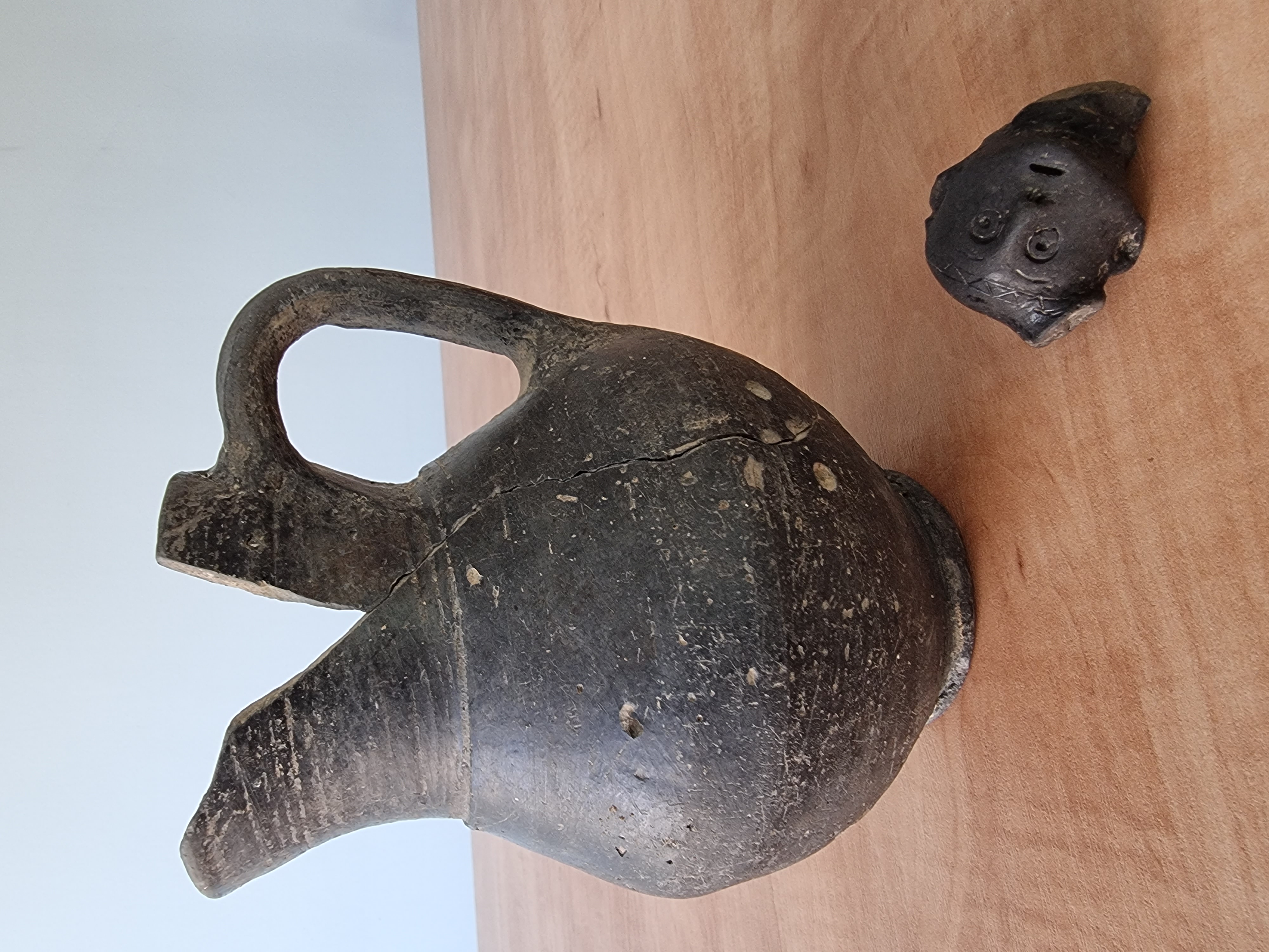 Innym rzadkim i niezwykle interesującym odkryciem jest mała gliniana główka znaleziona w ziemiance prawdopodobnie z okresu kultury pomorskiej i wczesnej epoki żelaza. Być może to ozdobny fragment naczynia ceramicznego, które mogło być używane ok. 700 lat przed naszą erą. Inne znalezione misy i dzbany pochodzą prawdopodobnie z początków naszej ery czyli z okresu wpływów rzymskich.