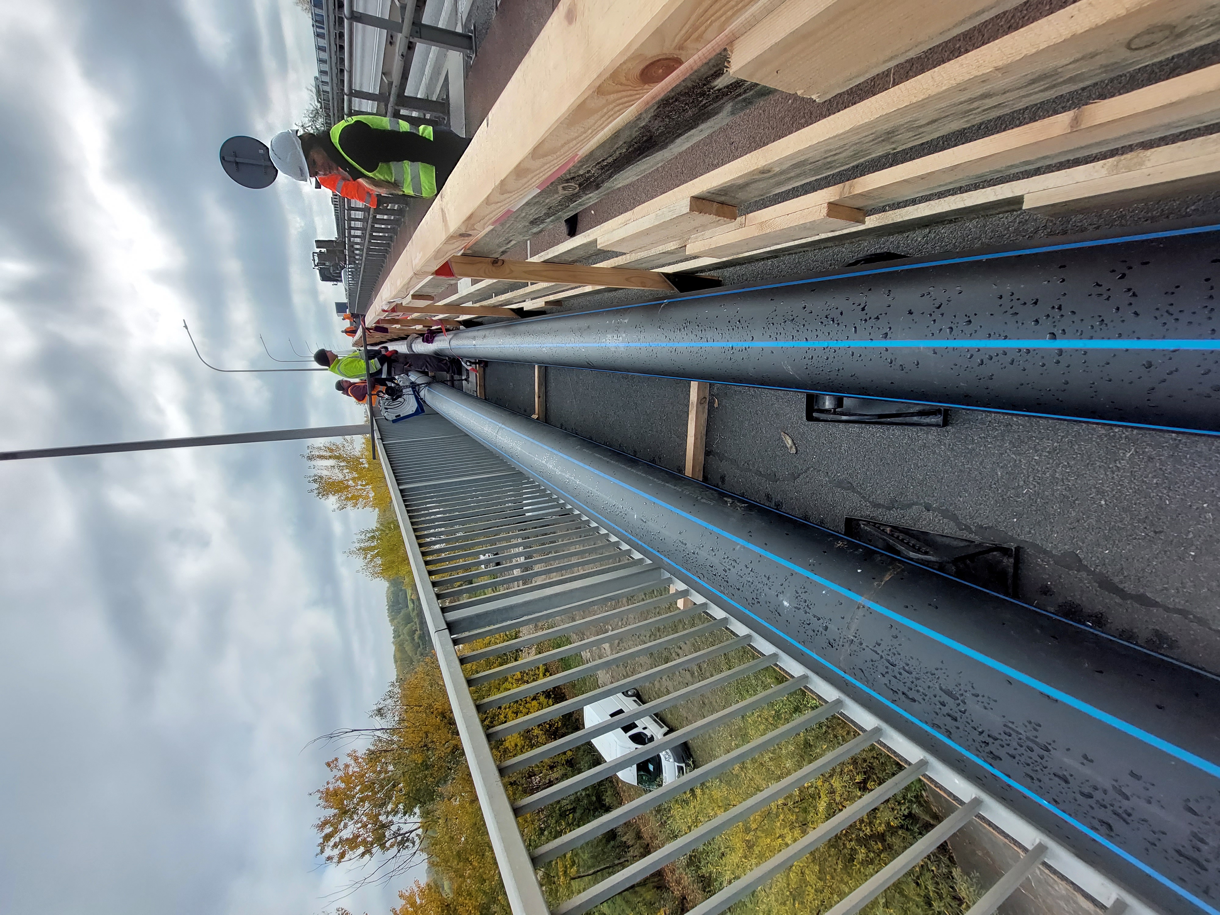 Wykonawca kontynuuje prace związane z przełożeniem mediów czyli sieci, które były podwieszone do starego obiektu. Sieci kanalizacyjne, wodociągowe i teletechniczne poprowdzone zostały tymczasowo zabezpieczonym kanałem po nowym moście wzdłuż ciągu pieszo-rowerowego. W listopadzie przełączone zostały główne sieci teletechniczne, w tym miesiącu planowane są przełączenia sieci wodociągowych, kanalizacyjnych, a następnie gazowniczych. Gazociąg poprowdzony będzie docelowo na głębokości kilkunastu metrów pod dnem rzeki. Główny kanał już został wykonany metodą przewiertu – trwają prace przy połączeniach z istniejącą siecią po lewej stronie Wisły.