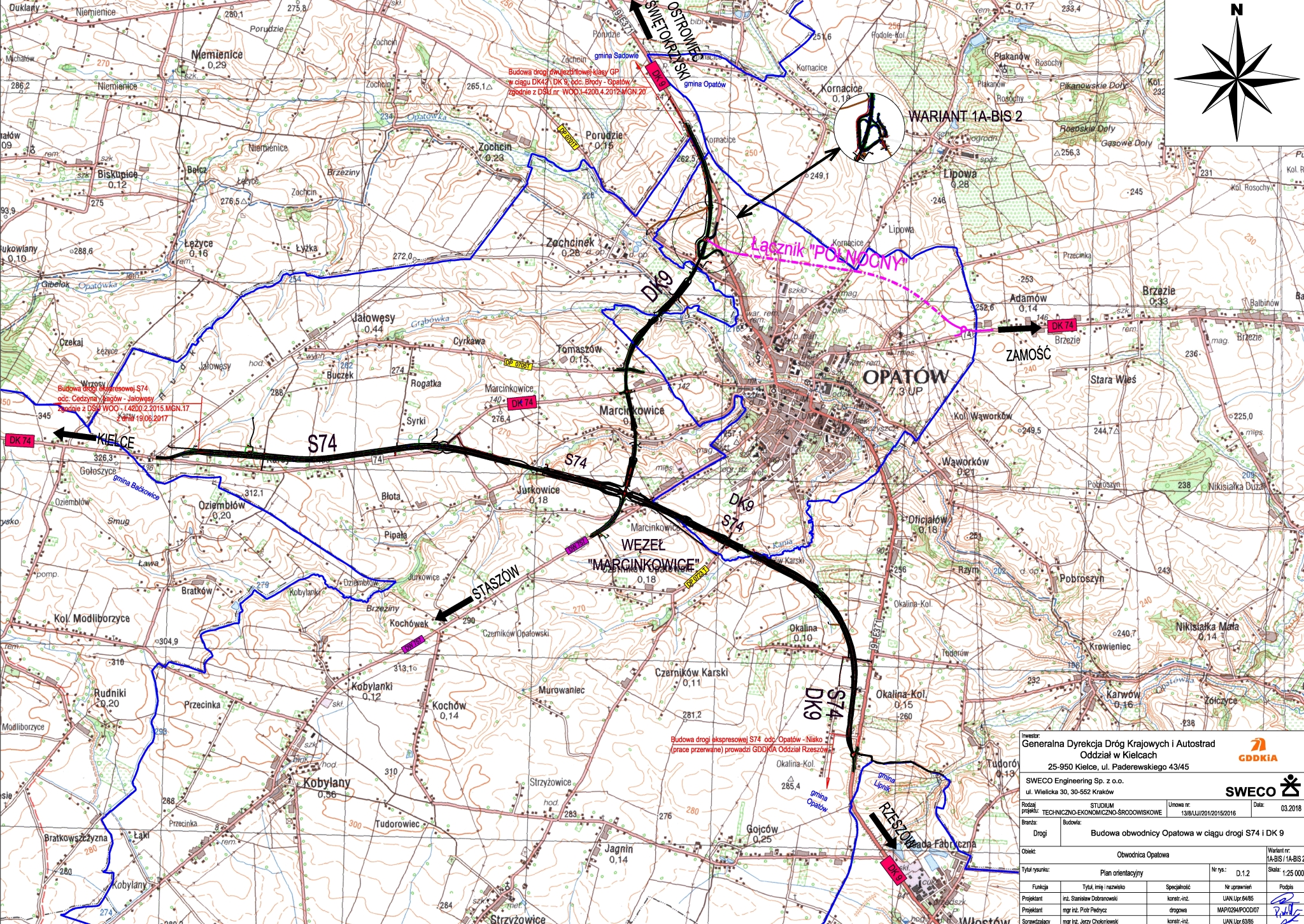 Inwestycja, na którą podpisaliśmy dziś umowę, połączy węzeł Opatów na DK9 (planowany w ramach obwodnicy Opatowa) z DK74 w okolicy Adamowa. Odcinek planowany jest jako jednojezdniowa droga klasy GP (droga główna ruchu przyspieszonego) o długości około 3 km. W ramach prac powstaną obiekty inżynierskie zlokalizowane na trzech skrzyżowaniach z drogami powiatowymi. Zadanie zakłada również budowę dróg dojazdowych dla skomunikowania przyległych terenów. Na łącznik będzie można wjechać poprzez dwa ronda.