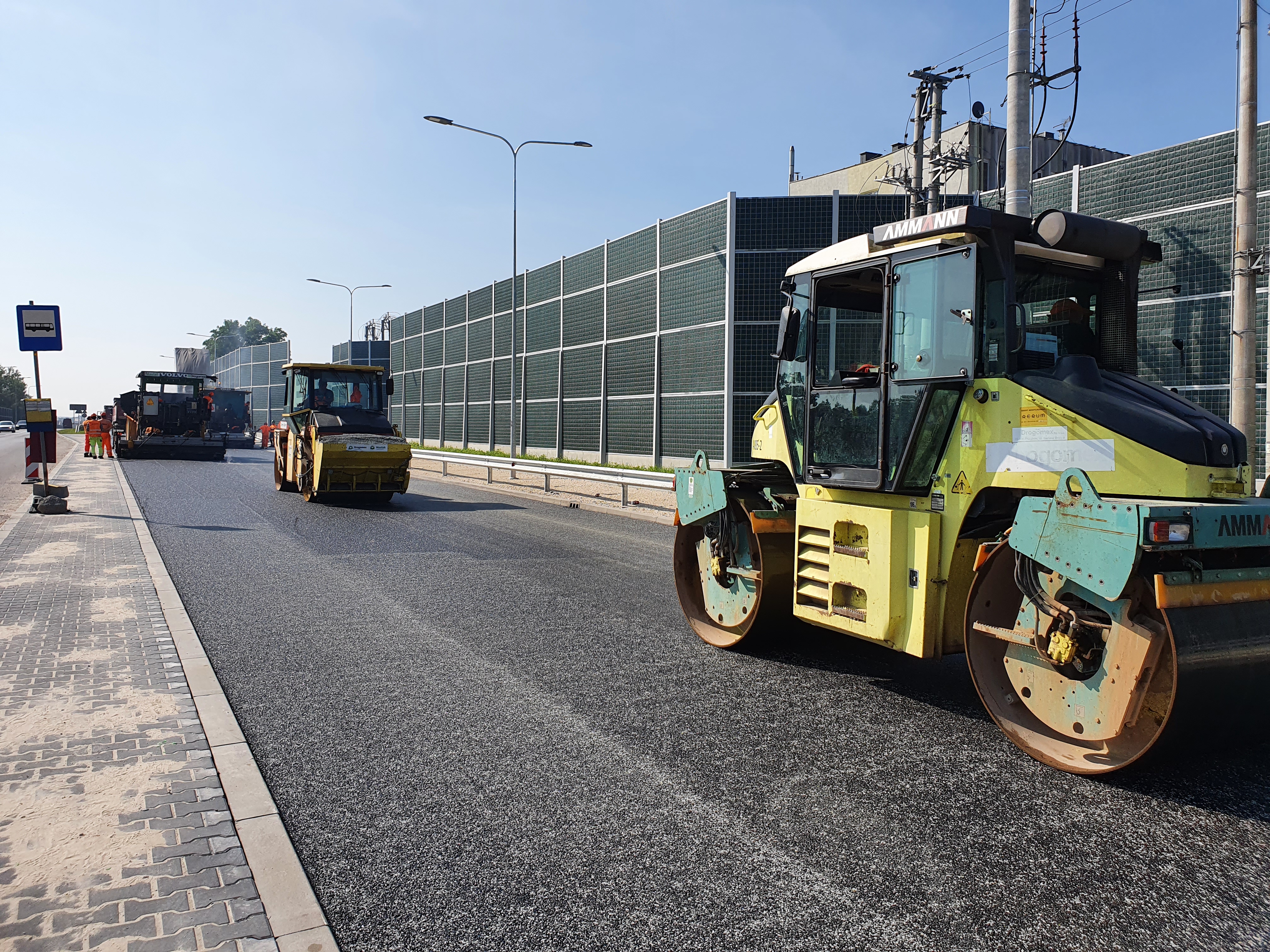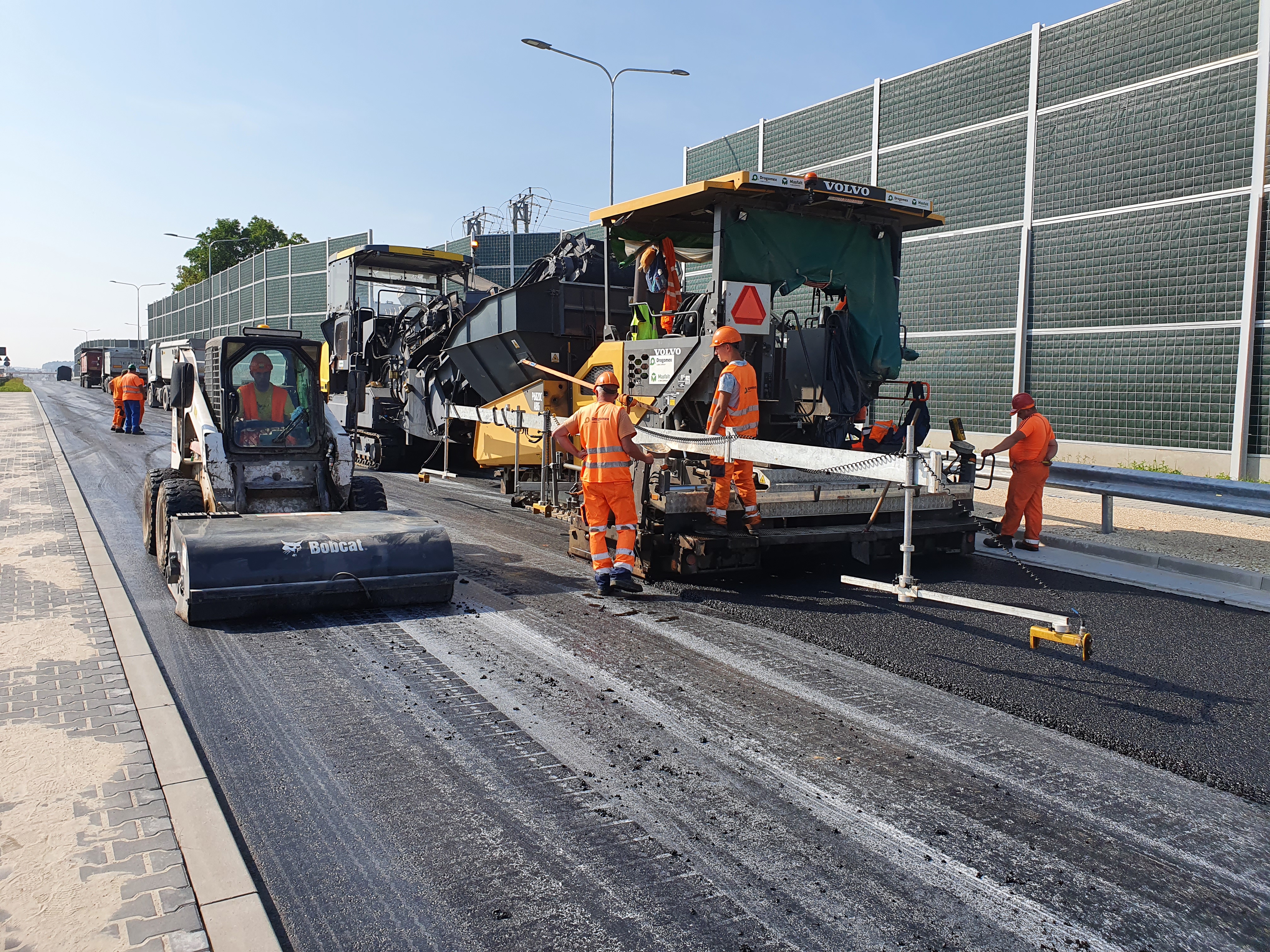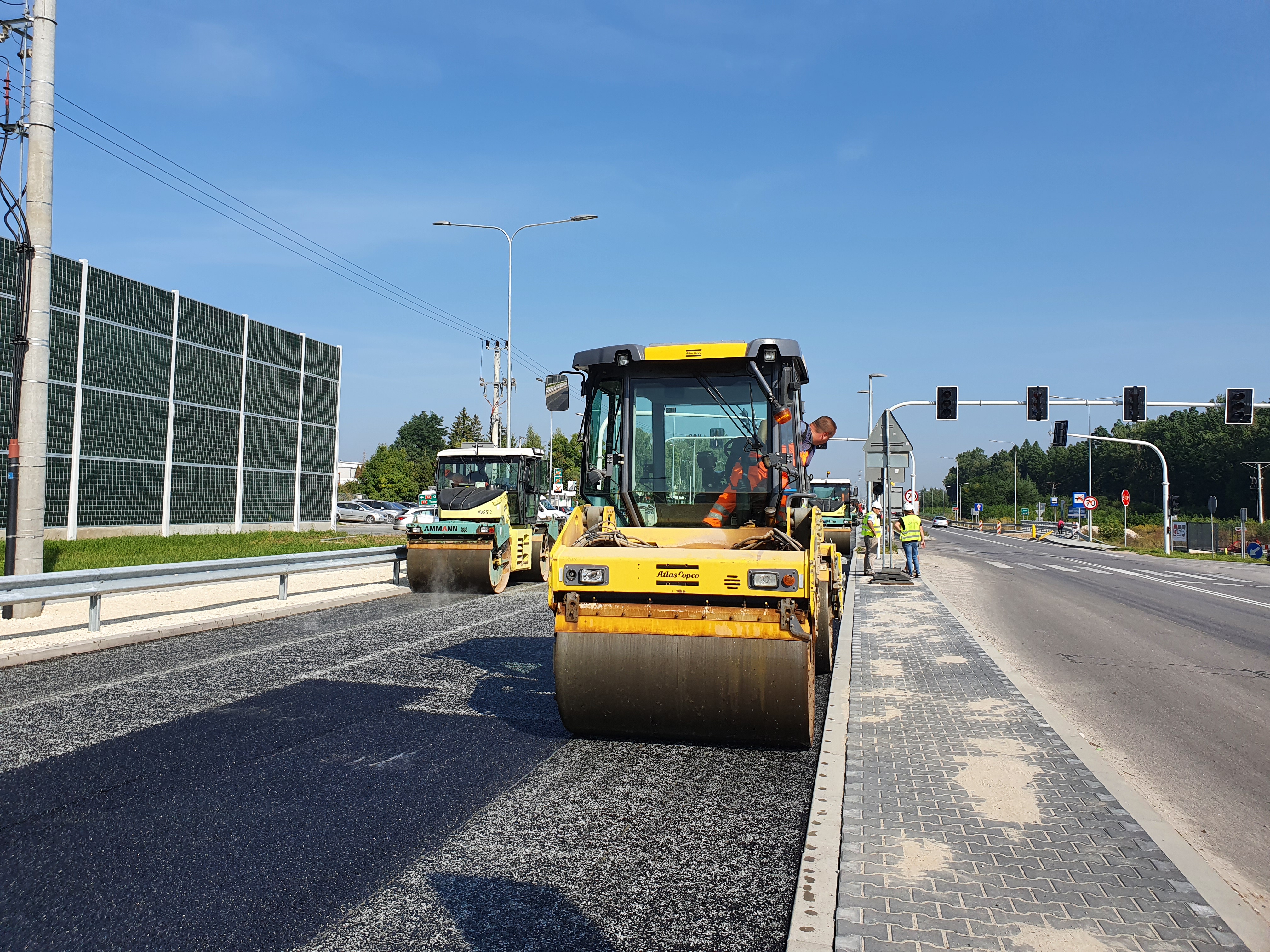 Wykonawca przystąpił do układania warstwy ścieralnej SMA na pierwszym odcinku przebudowywanej jezdni zachodniej. Po ułożeniu nawierzchni, wykonaniu oznakowanie poziomego i przeprowadzeniu bada laboratoryjnych, na jezdnię zachodnią przełożony zostanie ruch, a roboty bitumiczne prowadzone będą na jezdni wschodniej. Aktualnie ruch tymczasowy odbywa się właśnie nową jezdnią w schodnią w obu kierunkach po przedostatniej warstwie wiążącej nawierzchni. W związku z postępującymi robotami bitumicznymi na skrzyżowaniach dróg lokalnych z drogą krajową nr 73 wprowadzane będą krótkotrwałe zmiany organizacji ruchu