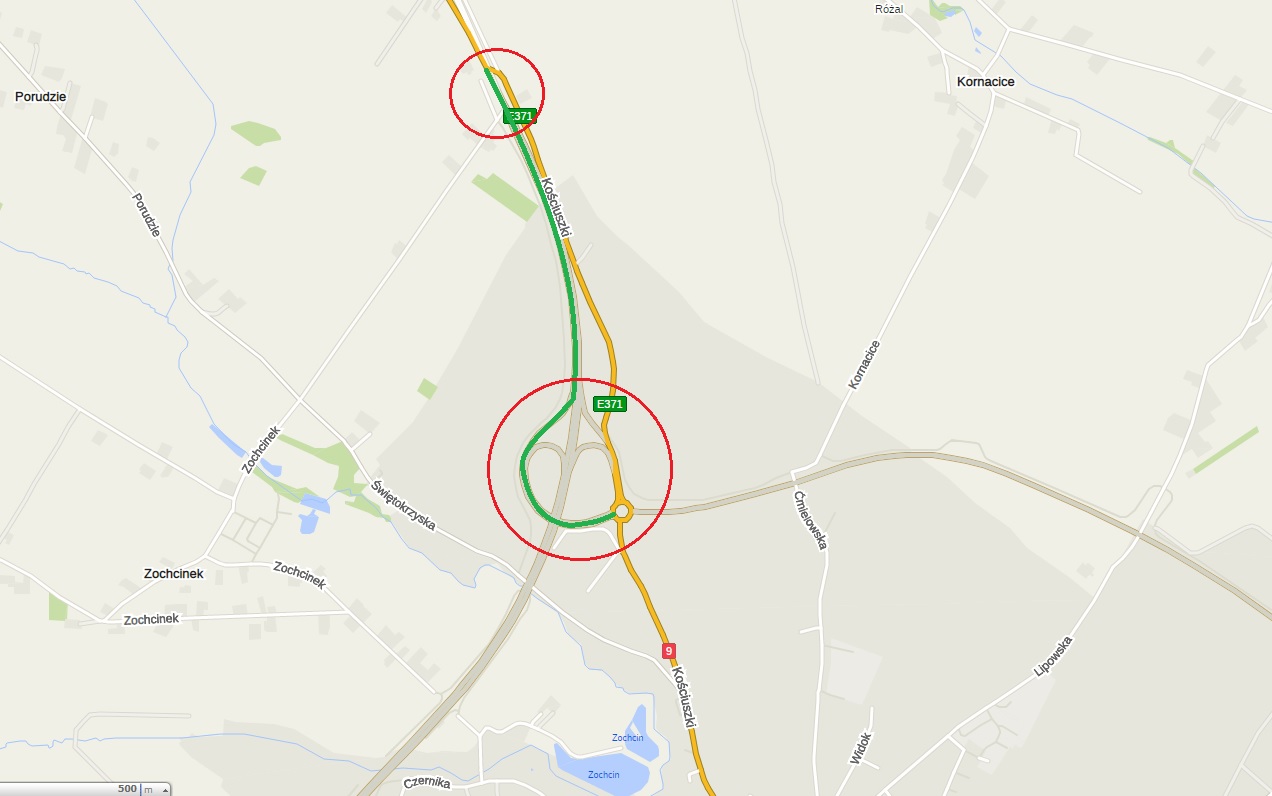 Od czwartku, 7 sierpnia, na dwóch odcinkach DK9 między Ostrowcem Świętokrzyskim a Opatowem obowiązywał będzie ruch wahadłowy sterowany sygnalizacją świetlną. Zmiany te wynikają z kolejnego etapu budowy węzła na skrzyżowaniu obwodnicy z obecnym przebiegiem DK9 i łącznikiem północnym w ciągu DK74.