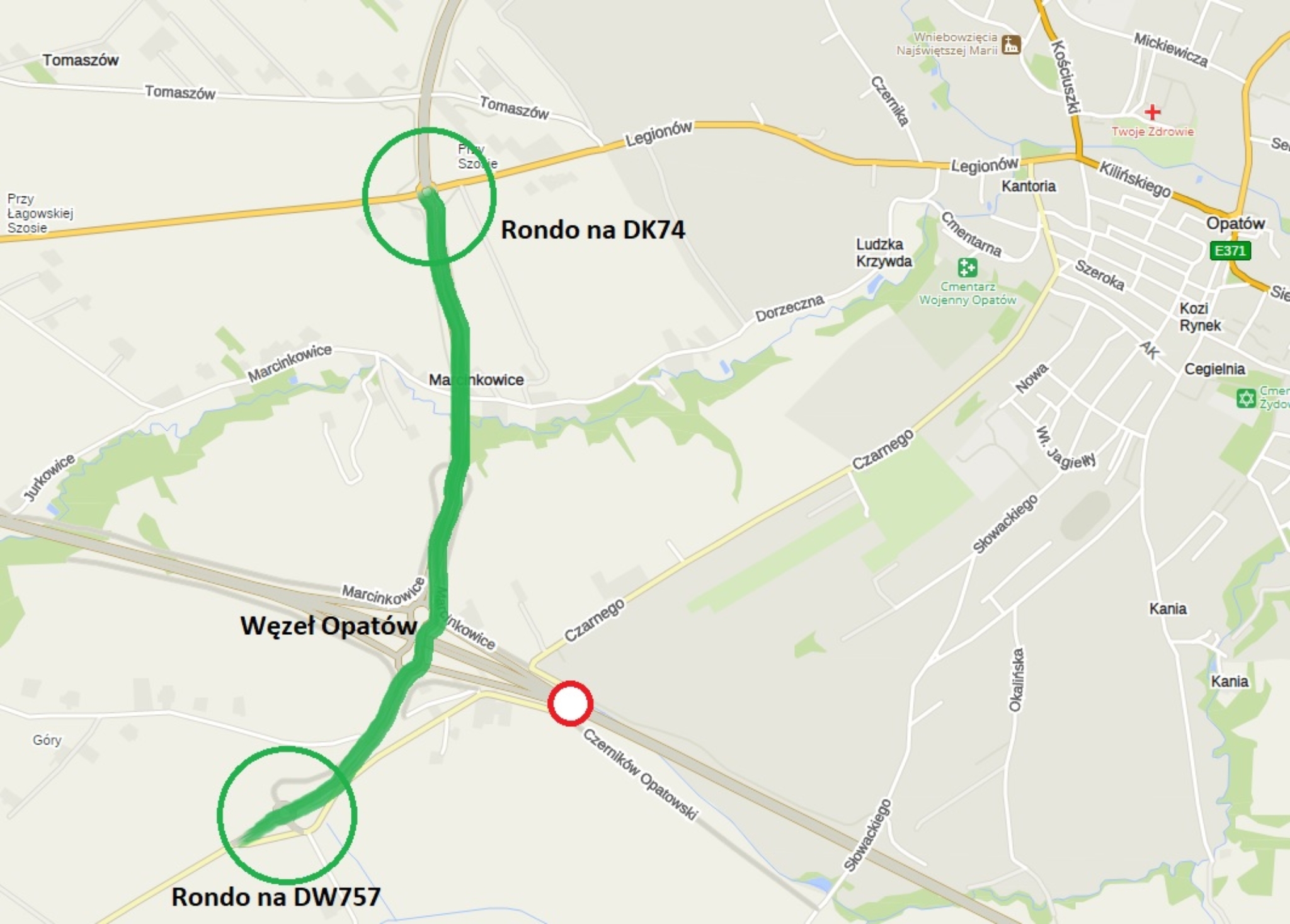 Nadal kontynuowane będą prace na początkowym odcinku inwestycji, przy węźle komunikującym nową DK9, istniejącą „dziewiątkę” i użytkowany łącznik północny do obwodnicy Opatowa w ciągu DK74. Prowadzone będą także roboty wykończeniowe na całym odcinku obwodnicy. W związku z tymi pracami tymczasowo wprowadzony zostanie ruch wahadłowy na DK74 przy ronddzie w Jałowęsach.