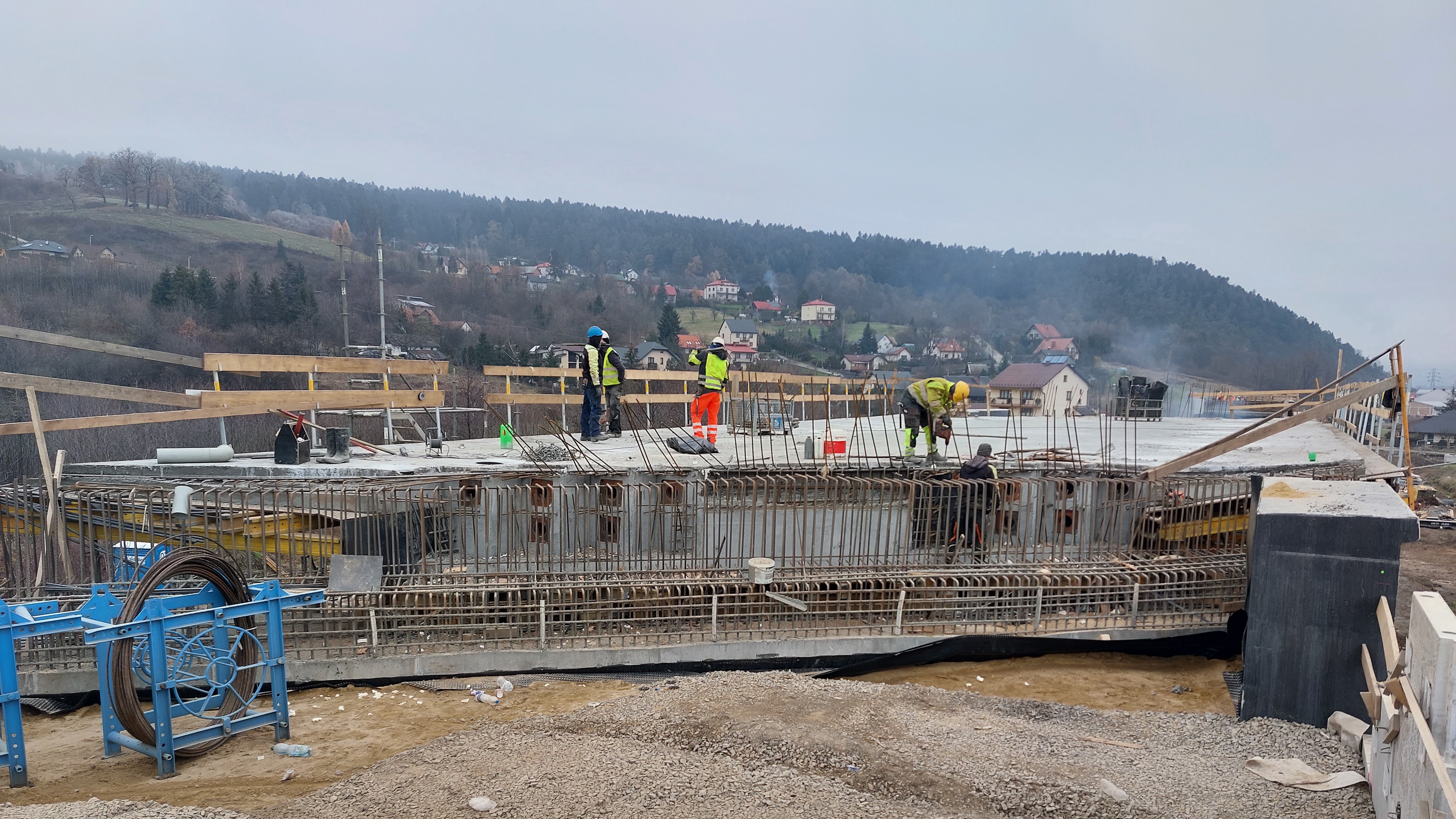 Na nowej drodze budowane są dwa mosty na rzeką Biczyczanką i dwa wiadukty (nad ulicą Leśną i nad ulicą Węgrzynek). Wykonawca wykonał wszystkie fundamenty i podpory. Trwa budowa ścian oporowych i ustrojów nośnych. Prace związane z budową tych obiektów są zaawansowane w 35 proc.