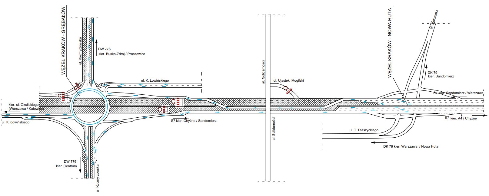 Udostępniliśmy S7 na zasadzie przejazdu po placu budowy. Kierowcy pojadą jednym pasem w każdym kierunku. Obowiązywać będzie ograniczenie prędkości do 60 km/h, a w miejscach przemieszczania się między jezdniami („przewiązki”) będzie ograniczenie do 40 km/h. Na jezdni prowadzącej w kierunku Warszawy (w okolicy zamkniętego właśnie zjazdu na ul. Ujastek Mogilski) będą trwały ostatnie prace związane z położeniem nawierzchni. Po ich zakończeniu przywrócimy wyjazd z trasy S7 na ul. Ujastek Mogilski. Nie będzie jednak możliwości zjazdu z ul. Ujastek Mogilski na trasę S7. To rozwiązanie będzie utrzymane jeszcze przez kilka miesięcy.