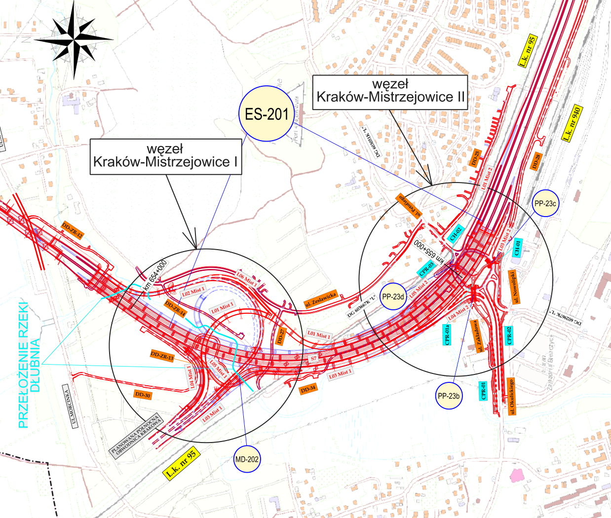 Nowa sytuacja, związana z gwałtownymi wzrostami natężeń ruchu, spowodowała konieczność przeanalizowania zastosowanych rozwiązań pod kątem przepustowości węzła Mistrzejowice. O wykonanie analizy zwróciliśmy się do specjalistów z Politechniki Krakowskiej. Wnioski wskazały potrzebę przeprojektowania dwóch łącznic węzła Mistrzejowice: łącznicy z S7 na S52 w kierunku z węzła Grębałów na S52 POK oraz łącznicy z S52 POK w kierunku węzła Grębałów na S7. Tym samym poprawiono nie tylko geometrię samego węzła, ale zmieniono przekrój łącznic na dwupasowy. Wprowadzone korekty zwiększą przepustowość poprzez uniknięcie tzw. wąskich gardeł.