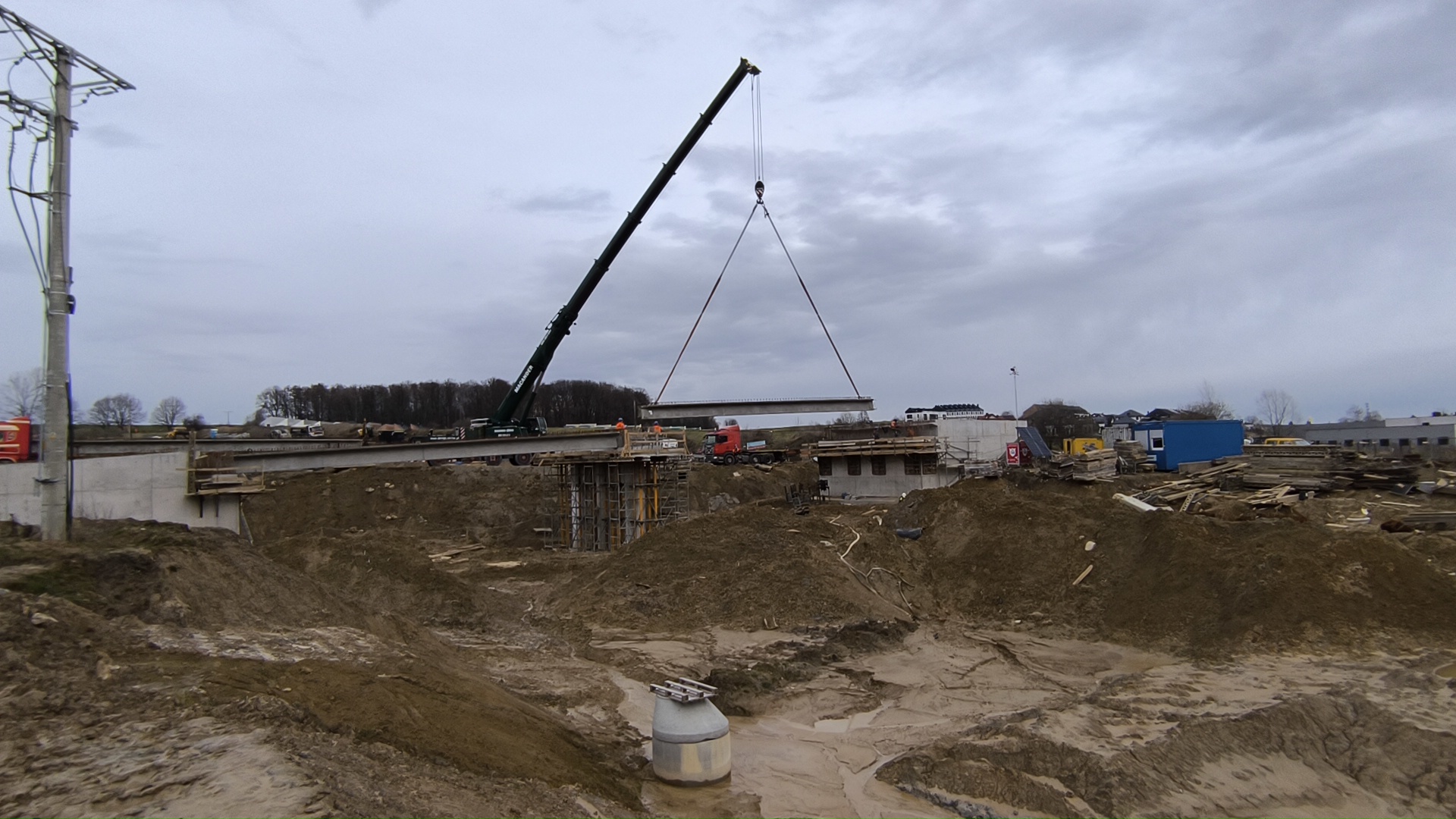 Prace na budowie były prowadzone nawet w bardzo niskich temperaturach, przy -17 stopniach. W takich warunkach m.in. kładziono w styczniu belki nad ul. Legionów, które będą częścią konstrukcji mostu nad Sołą. Budowa obwodnicy Oświęcimia to jedna z naszych „najcieplejszych” inwestycji – zima jest tu względnie łagodna i ustępuje szybciej, niż na innych obszarach. Jednak konsekwencją są problemy z roztopami i błotem, które na terenie budowy występuje wyjątkowo obficie. Monitorujemy stan wód gruntowych i nasze pomiary wskazują, że tej zimy był on wyjątkowo wysoki.