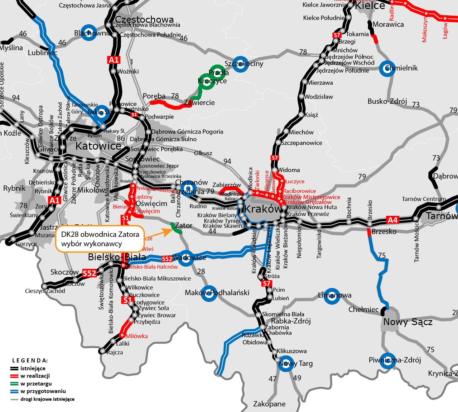 Firma Skanska za 78,6 mln zł zbuduje 2,1 km nowej drogi krajowej nr 28, która od południowego zachodu ominie to małopolskie miasto. Wykonawca został wybrany w trybie dialogu konkurencyjnego. Zastosowaliśmy tę niecodzienną procedurę z uwagi na innowacyjny charakter inwestycji wykorzystującej metodykę BIM (ang. Building Information Modeling).