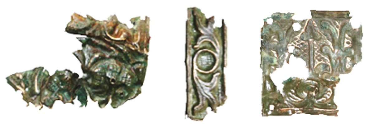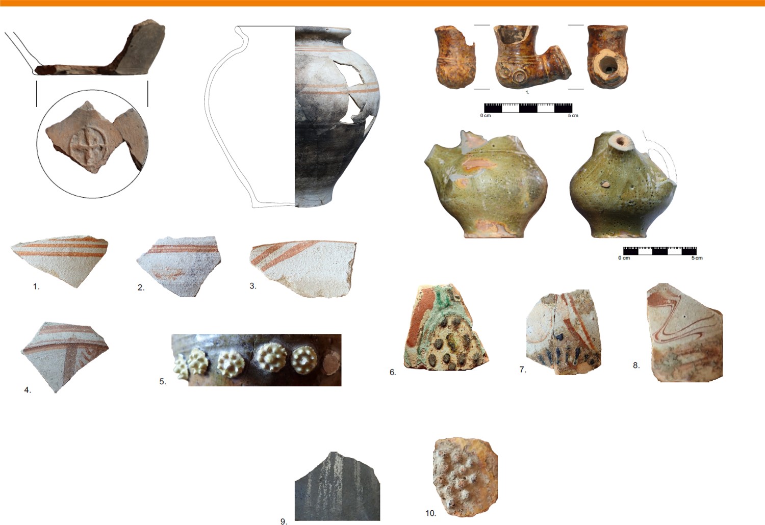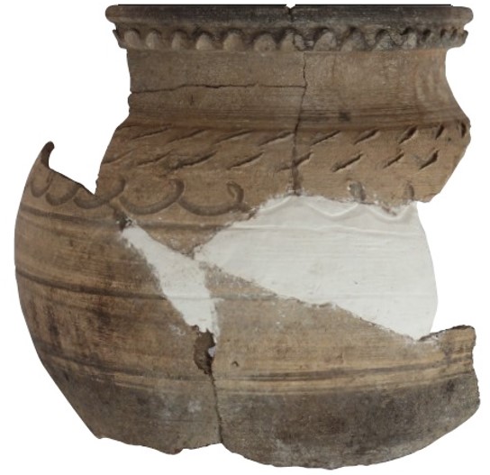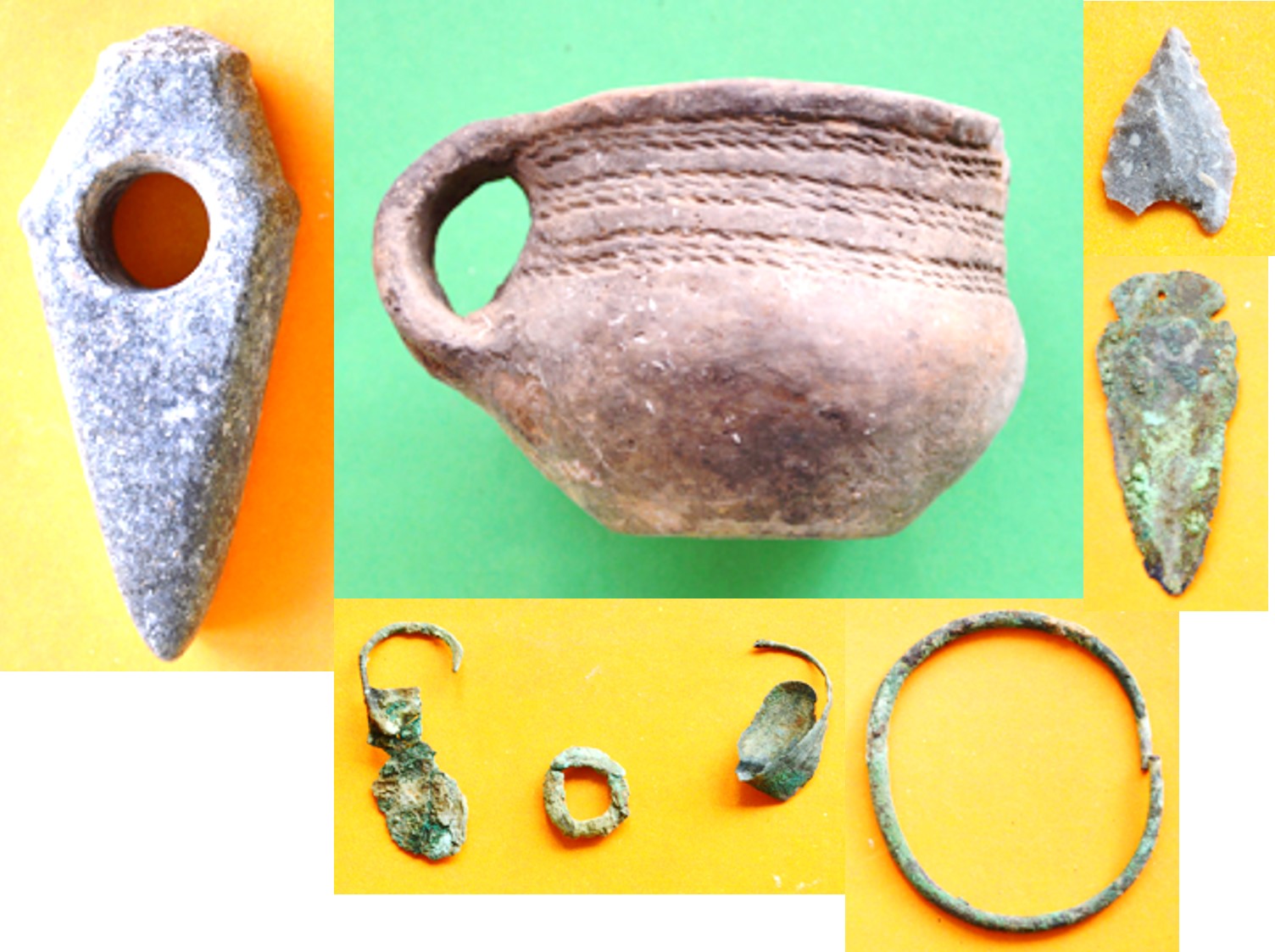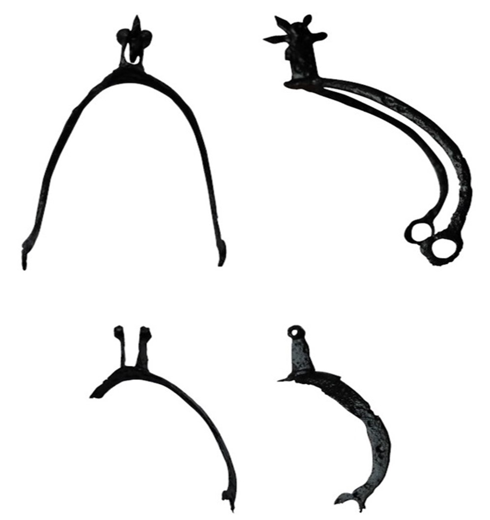 Do jednych z najciekawszych znalezisk należą odkryte w miejscowości Moczydło naczynia ceramiczne datowane na okres wczesnej epoki brązu (ok. 2200-2000 p.n.e.). Technologia ich wytworzenia i sposób zdobienia wskazują na wpływ odległej o ponad tysiąc kilometrów kultury z obszaru stepów nadczarnomorskich (ryc. 1). Na tym samym stanowisku odkryto również liczne zabytki z okresu średniowiecza, m.in. używane przez jeźdźców ostrogi z przełomu XIII i XIV wieku (ryc. 2) i pozostałości naczyń ceramicznych (ryc. 3-7).