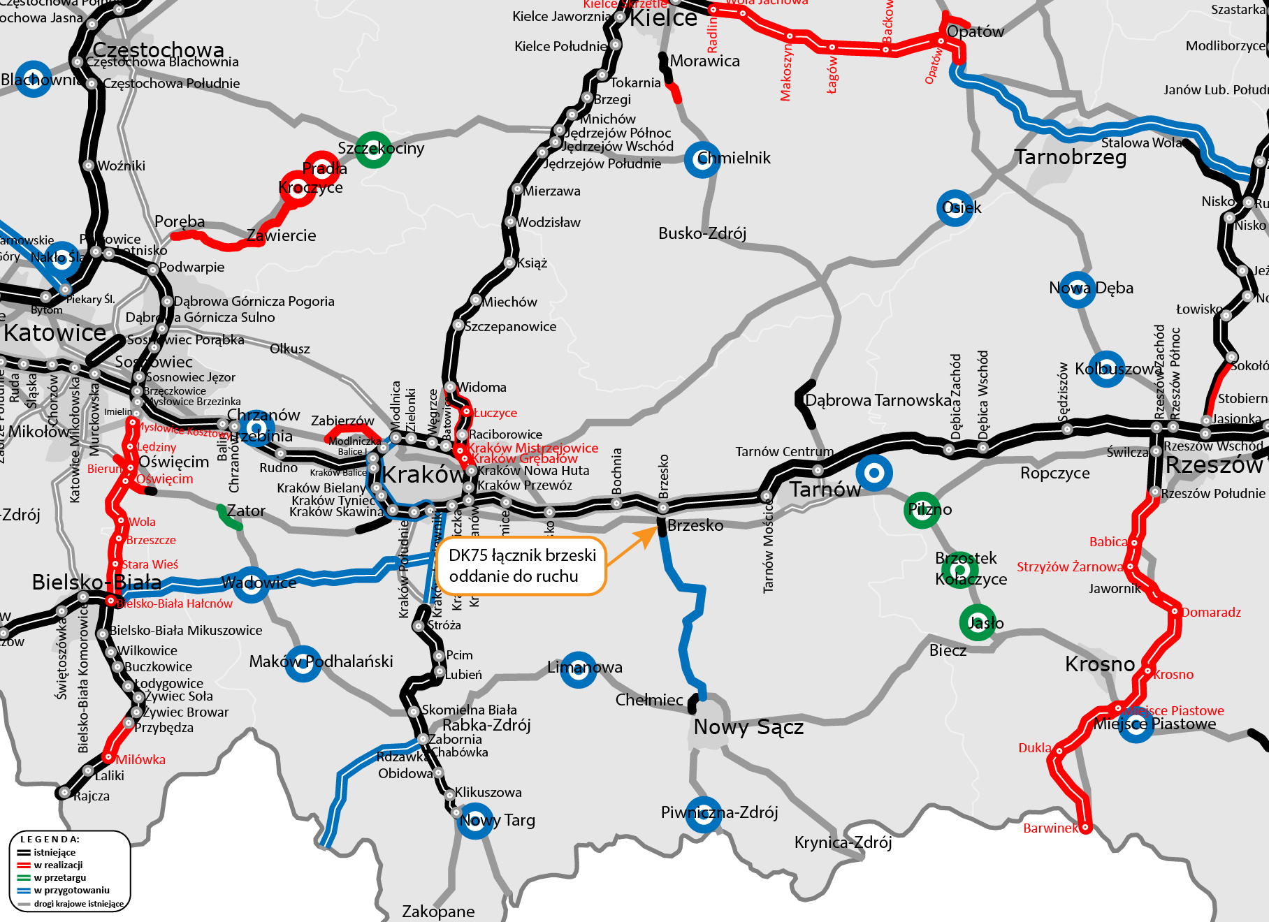Nowa trasa ma dwie jezdnie, każdą z dwoma pasami ruchu. Dziś kończy się z obu stron rondami, ale zostawiliśmy w tych miejscach rezerwę na budowę estakad. Będą one mogły powstać, kiedy ruszy budowa dalszego odcinka sądeczanki. Wtedy kierowcy jadący trasą DK75 od autostrady A4 nie będą wjeżdżać na żadne z rond, lecz przejadą nad nimi. O sądeczance pisaliśmy ostatnio w grudniu, przy okazji otrzymania decyzji środowiskowej dla tej inwestycji.