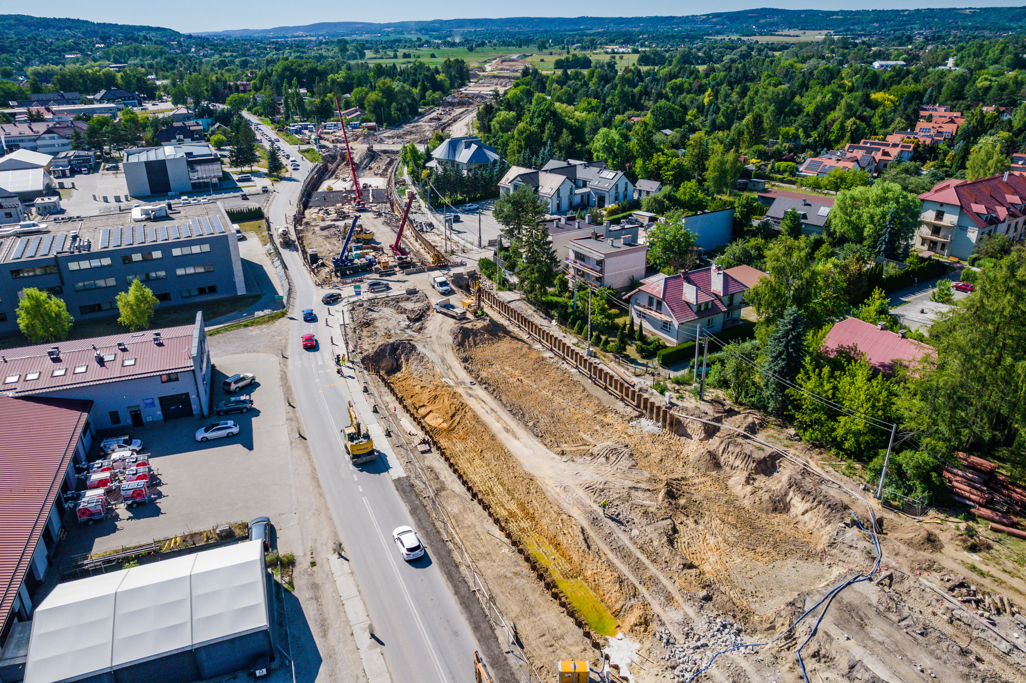 Zaawansowane prace toczą się na odcinku nowej drogi prostopadłej do obwodnicy, łączącej ul. Krakowską w Zabierzowie, obwodnicę i ul. Szlachecką w Brzeziu. Na części tej drogi ułożyliśmy już dwie warstwy asfaltu. Na rondzie turbinowym przygotowujemy konstrukcję drogi, trwają też prace brukarskie. Rondo po północnej stronie (w Brzeziu) jest już niemal gotowe, a rondo po południowej stronie (w Zabierzowie) jest przygotowane w połowie.