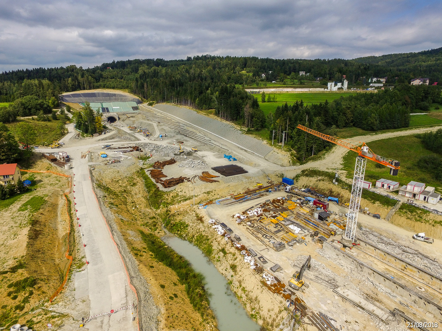 Na portalu południowym rozpoczęto drążenie tunelu na jezdni w kierunku Zakopanego. Kontynuowano prace przy drążeniu obu naw tunelu i wykonaniu obudowy ostatecznej. Prowadzono również prace związane z budową mostu i zabezpieczeniem skarp oraz budową muru oporowego na portalu południowym.