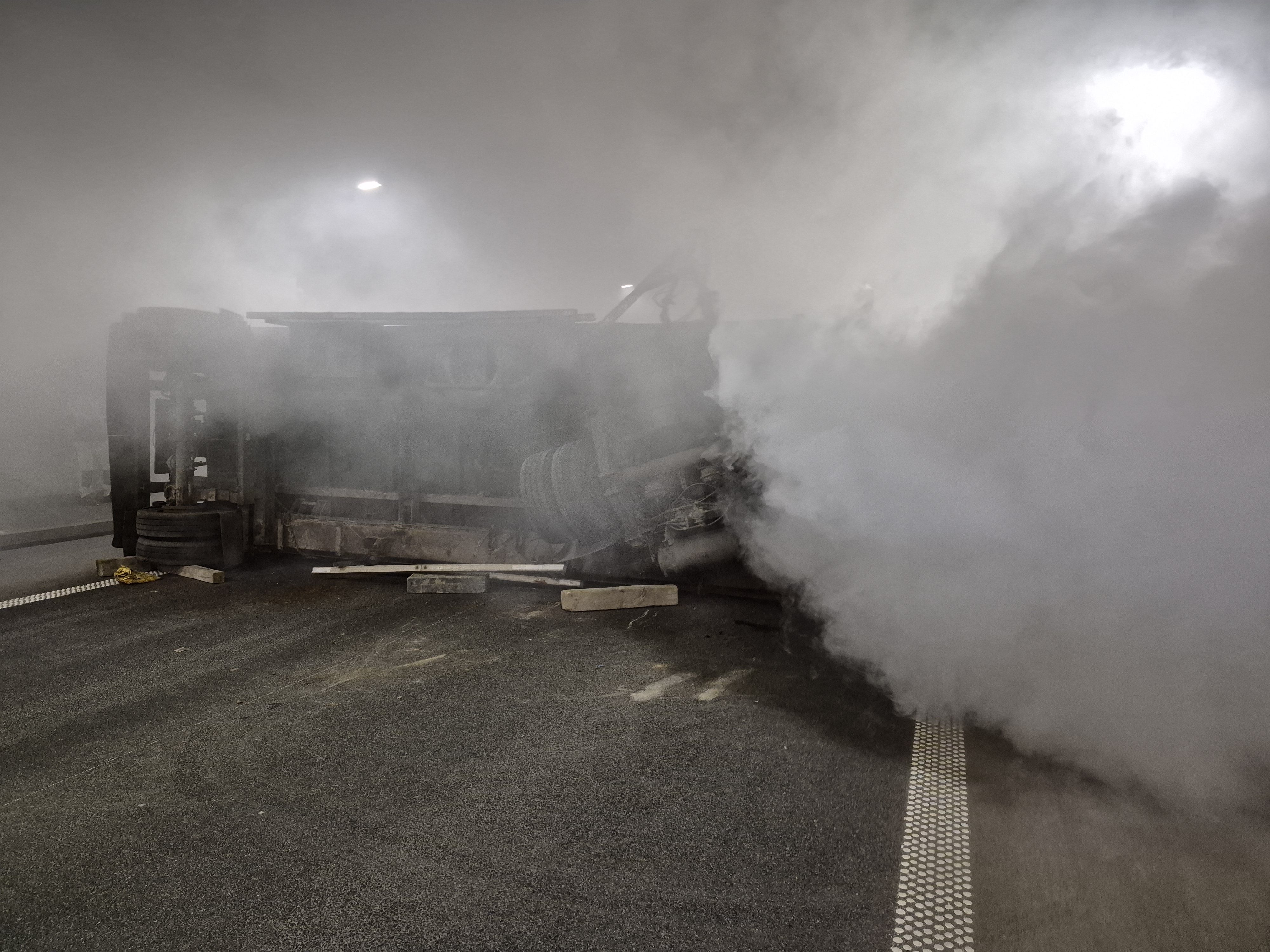 Około godz. 9 rano kierowca cysterny, jadący w kierunku Krakowa, wjechał do tunelu pod Luboniem Małym. W tym momencie stracił kontrolę nad pojazdem i uderzył w tył ciężarówki poruszającej się na tym samym pasie. W wyniku zderzenia przyczepa ciężarówki przewróciła się na lewy pas jezdni, blokując ruch w tunelu.