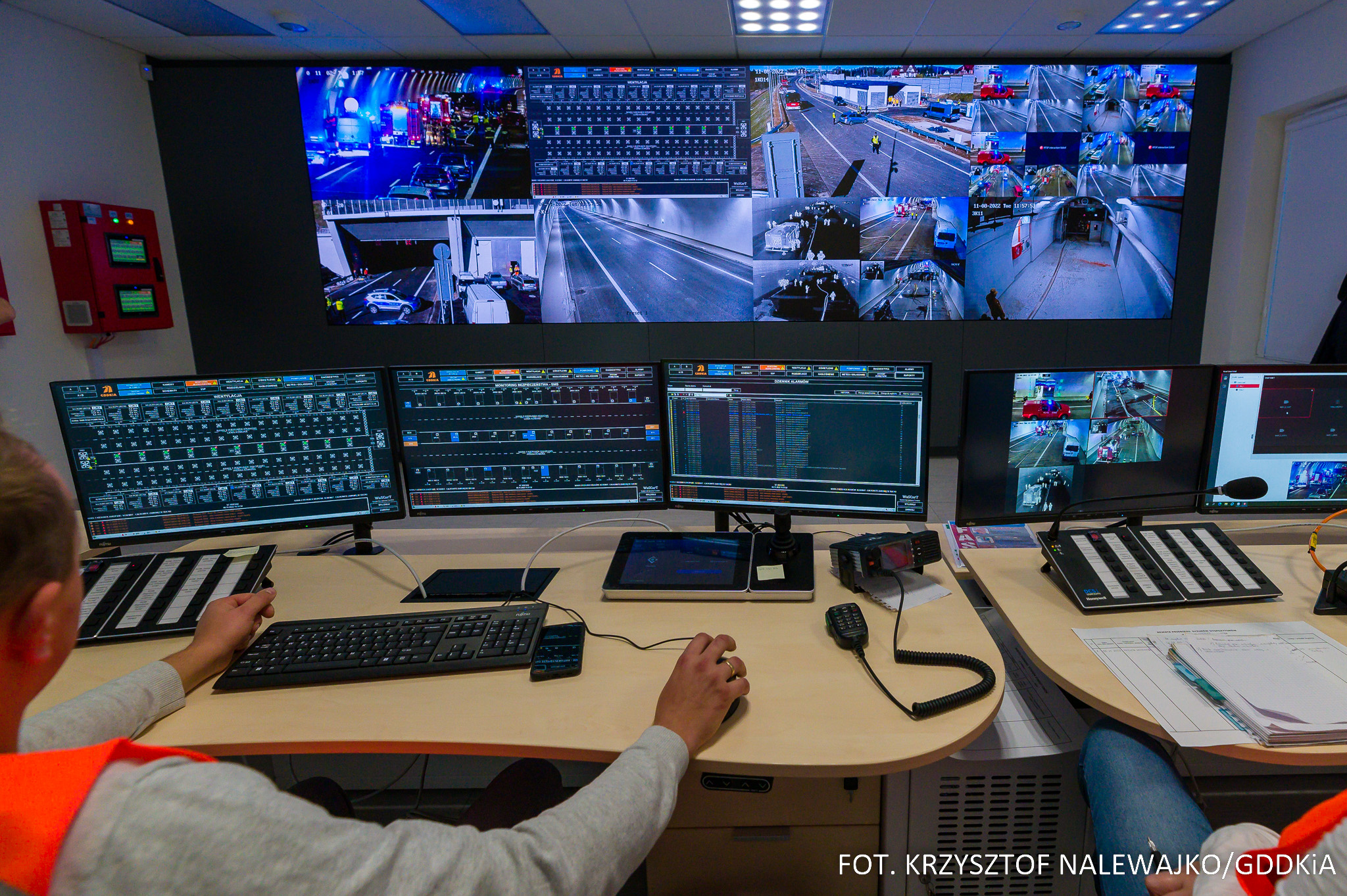 Aby było bezpiecznie, tunel od samego początku jest pod stałym nadzorem naszego centrum zarządzania. Pracują tam osoby, które bez przerwy monitorują sytuację na drodze, a w razie konieczności podejmują odpowiednie kroki. Za system monitoringu wizyjnego odpowiadają kamery obrotowe, wideodetekcji, kamery stałopozycyjne oraz kamery dualne (pokazujące zwykły obraz oraz termowizyjny).