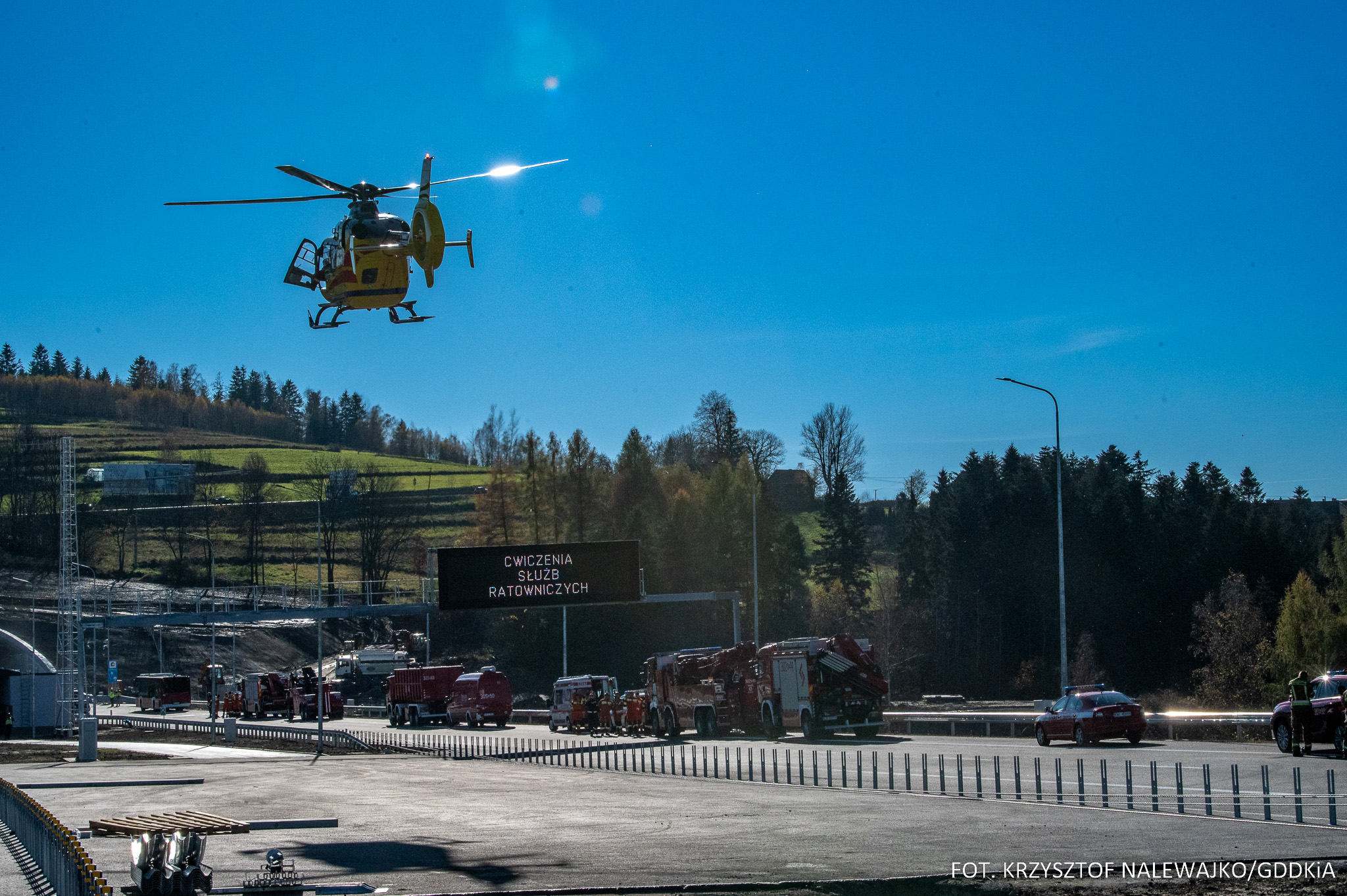 8 listopada w tunelu zostały przeprowadzone ćwiczenia praktyczne, oparte o tzw. czarne scenariusze, czyli sytuacje, które mamy nadzieję nigdy się nie wydarzą. W ćwiczeniach uczestniczyli: Komenda Wojewódzka Państwowej Straży Pożarnej w Krakowie wraz z jednostkami terenowymi, Komenda Wojewódzka Policji w Krakowie wraz z jednostkami terenowymi, Pogotowie Ratunkowe, Lotnicze Pogotowie Ratunkowe, Małopolski Urząd Wojewódzki w Krakowie, Generalna Dyrekcja Dróg Krajowych i Autostrad oraz pracownicy Centrum Zarządzania Tunelem.