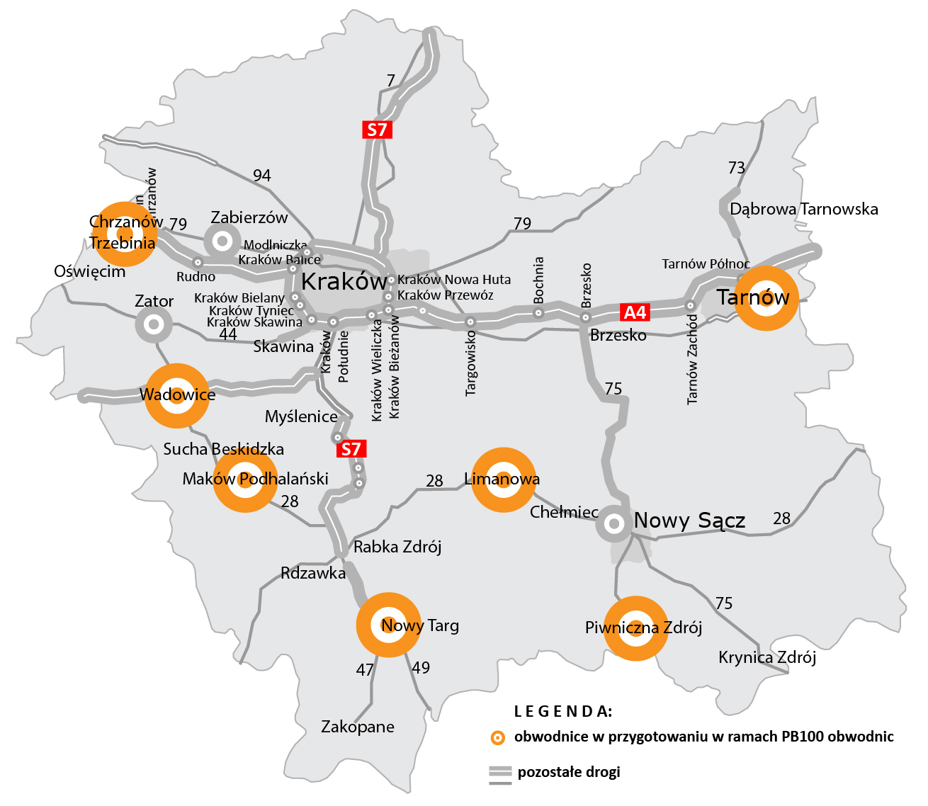 Siedem obwodnic powstanie w woj. małopolskim w ramach rządowego Programu budowy 100 obwodnic na lata 2020-2030. Będą to obwodnice Limanowej, Nowego Targu, Piwnicznej, Wadowic, Makowa Podhalańskiego, Trzebini i wschodnia Obwodnica Tarnowa.