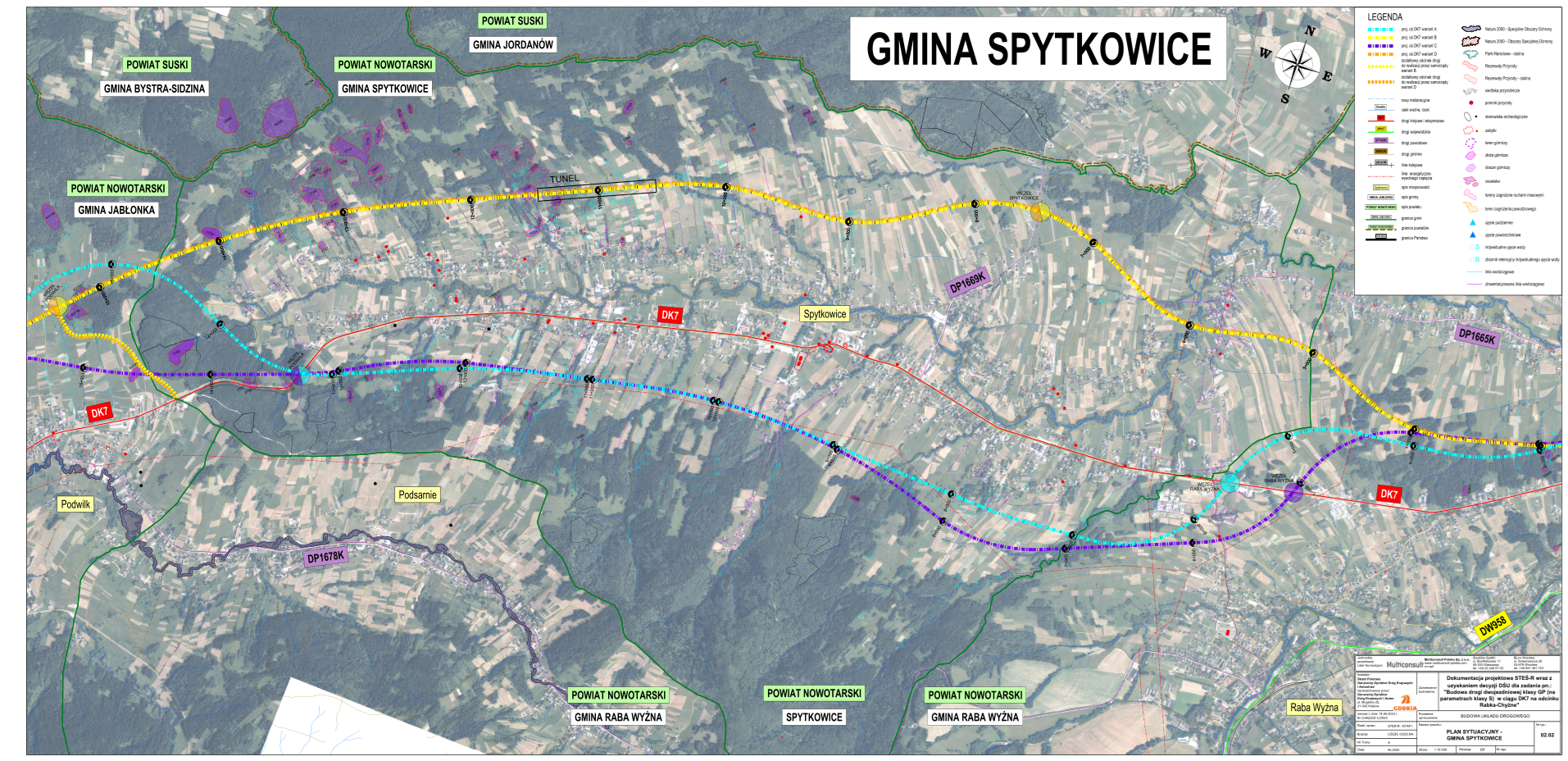 - w przypadku wariantów A i C, które zakładają wyznaczenie trasy przez Chyżne śladem obecnej DK7, poprowadziliśmy drogę przez wieś ok. 250-metrowym tunelem, ograniczając oddziaływanie drogi na pobliskie zabudowania;