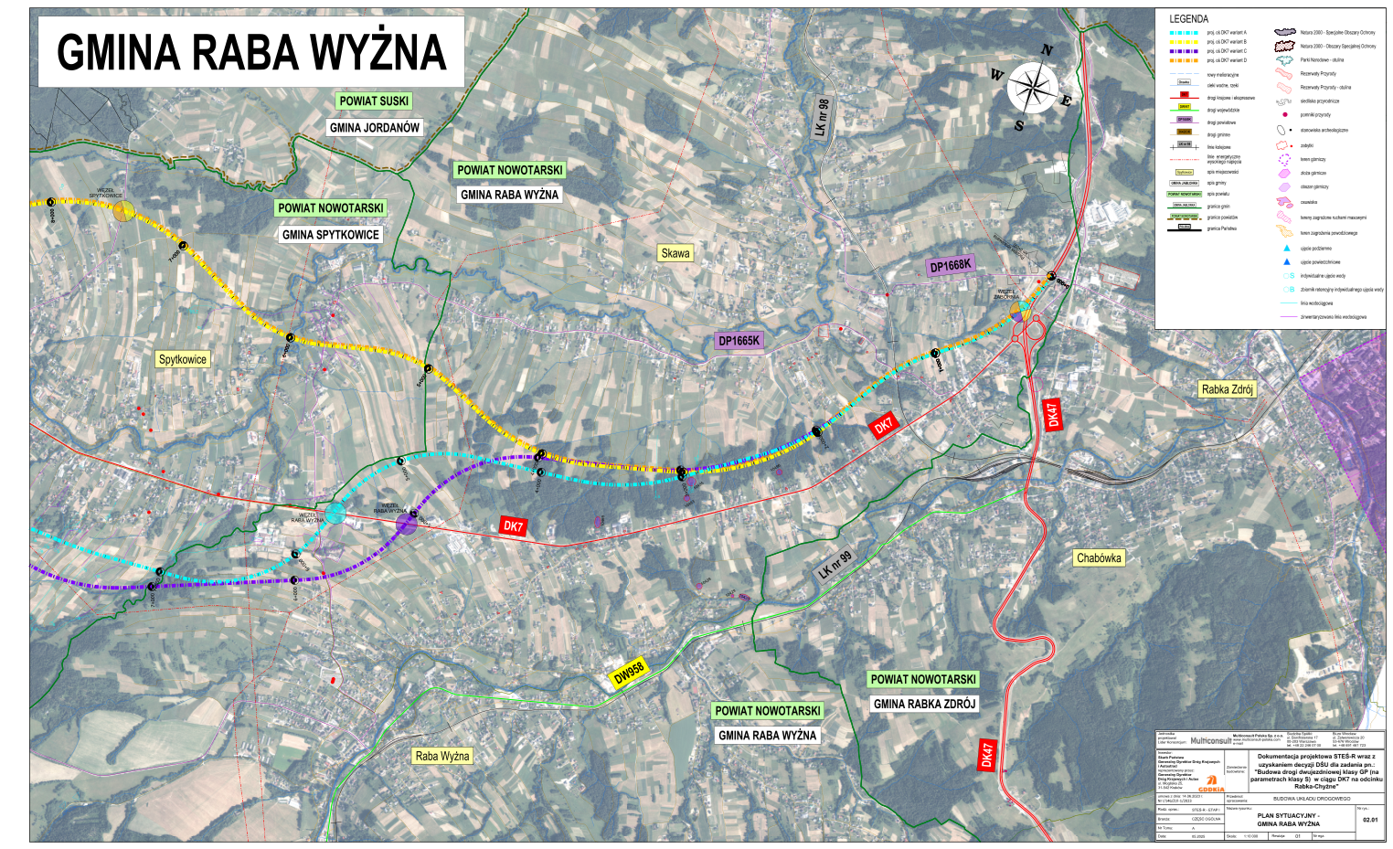 Początek nowej drogi krajowej nr 7, zwanej popularnie chyżnianką, zaplanowaliśmy na węźle Zabornia, gdzie dziś kończy się trasa S7, a dalej biegną DK47 (do Zakopanego) i DK7 do Chyżnego. Droga przez pierwsze cztery kilometry w każdym wariancie biegłaby na północ od dzisiejszej DK7. Następnie – w zależności od propozycji – omijałaby od północy lub południa Spytkowice. Dalej wszystkie warianty przebiegałyby po zachodniej stronie Podwilka, Orawki i Jabłonki. W samym Chyżnem przedstawialiśmy trzy możliwości przebiegu trasy – we wschodniej i zachodniej części wsi oraz z wykorzystaniem dzisiejszego przebiegu DK7.
