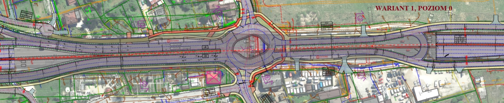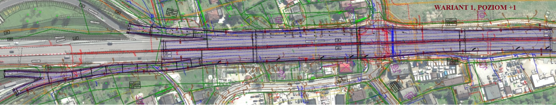 We wszystkich wariantach przewiduje się budowę estakady w poziomie +1 prowadzącej ruch tranzytowy nad poziomem 0 służącym do obsługi ruchu lokalnego (obecna Zakopianka).