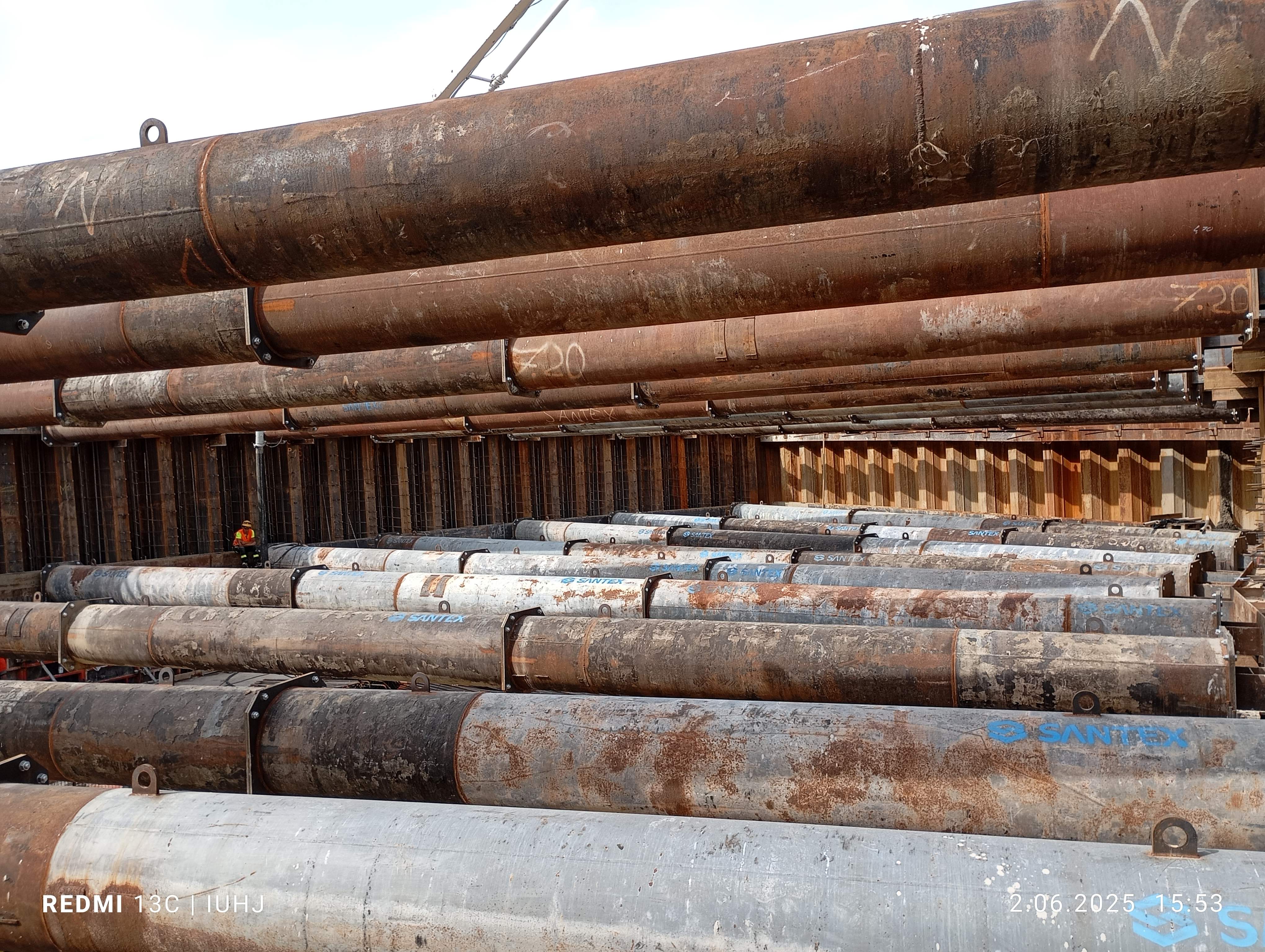 położyliśmy strop. Budowę zabezpieczyliśmy specjalnymi belkami, które podtrzymują ściany i rozpierają je do odpowiedniej szerokości. W momencie, gdy beton osiągnie ok. 70 proc. swojej wytrzymałości, będziemy mogli ściągnąć belki.