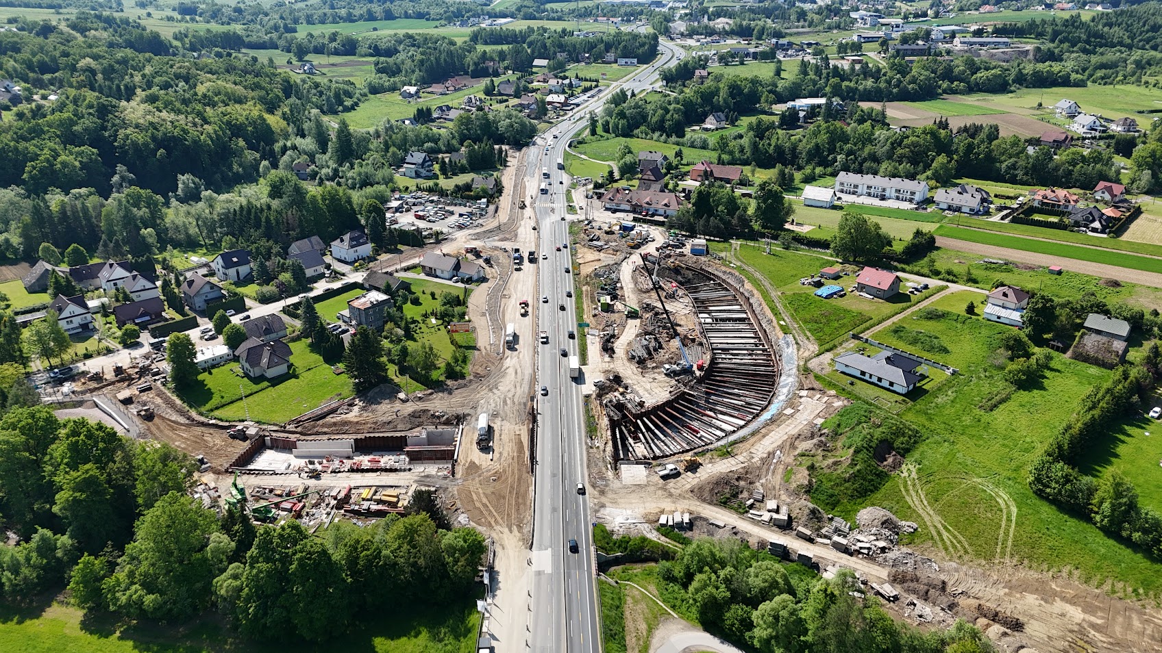 Dlaczego budujemy tunel w Krzyszkowicach? Chcemy zlikwidować lewoskręt, który w tym miejscu powodował korki i mniejsze bezpieczeństwo kierowców. Inwestycja obejmuje cały węzeł drogowy, tak aby bezkolizyjnie połączyć zakopiankę (DK7) oraz drogę powiatową prowadzącą w kierunku Sieprawia. Poza samym tunelem zbudujemy też dodatkowe jezdnie po obu stronach DK7, które w przyszłości staną się częścią dróg lokalnych, biegnących wzdłuż zakopianki. Naszym celem jest poprawa płynności ruchu nie tylko w samych Krzyszkowicach. Podobne prace prowadzimy także na innych odcinkach zakopianki – jednej z najpopularniejszych dróg w skali kraju.