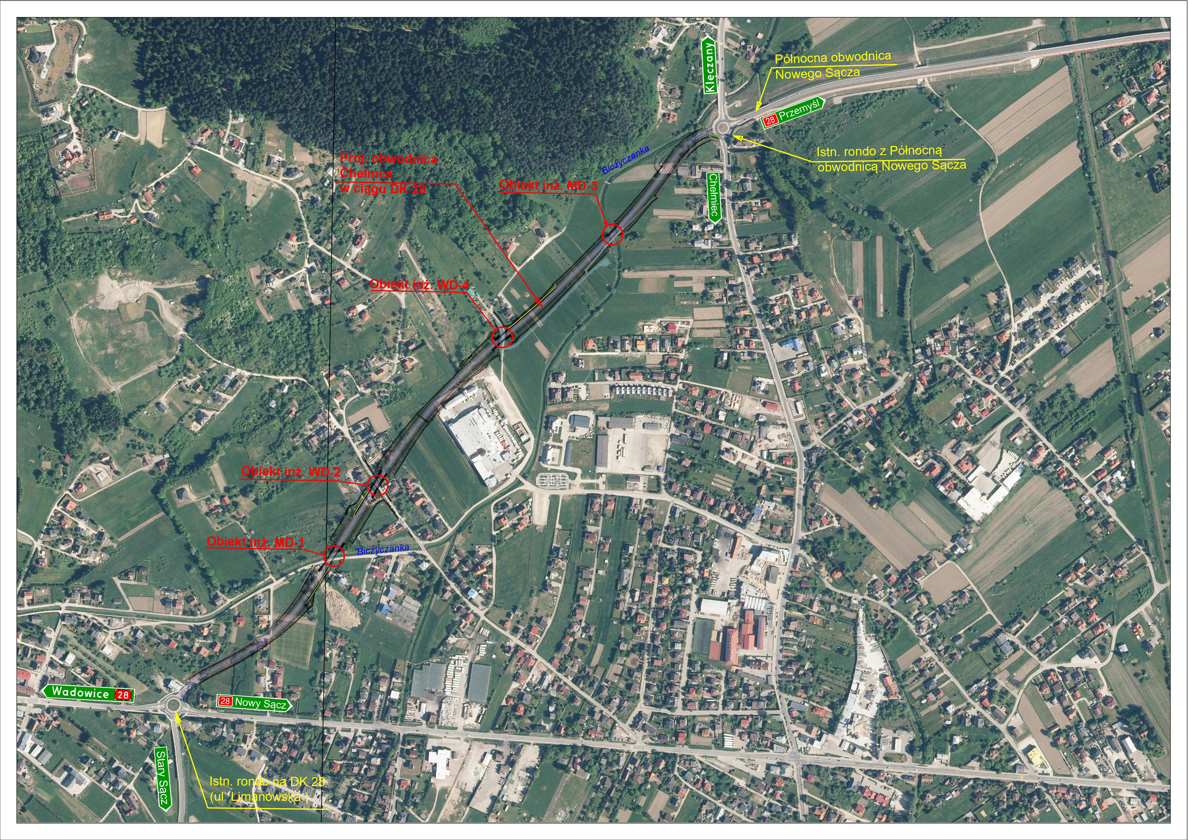 Poprowadzona po nowym śladzie obwodnica, w północnej części Chełmca, ominie jego centrum i umożliwi połączenie sieci dróg krajowych nr 28 i 75 w północno-zachodniej części Nowego Sącza. Przyczyni się to do poprawy istniejących warunków komunikacyjnych występujących na terenie gminy Chełmiec oraz na odcinku dojazdu do trzeciego co do wielkości miasta województwa małopolskiego. Inwestycja znajduje się na liście zadań ujętych w Programie Budowy Dróg Krajowych 2014-2023.
