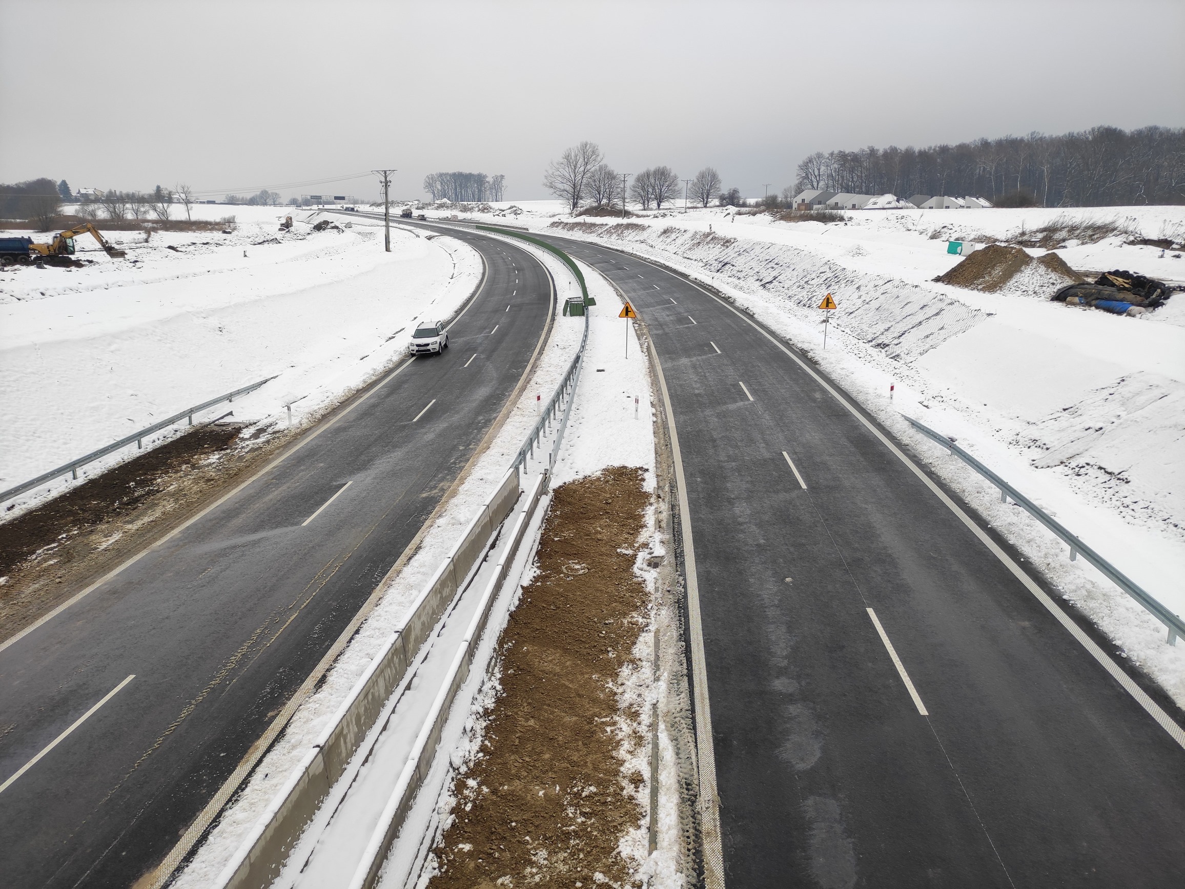 Przerwa zimowa nie zatrzymała ostatnich prac wykończeniowych i porządkowych na drodze, która została udostępniona kierowcom na początku ferii. Na przełomie roku trwały prace ziemne związane z umocnieniem rowów oraz przykryciem skarp warstwą żyznej ziemi (humusowanie). Montowano też bariery energochłonne i ekrany akustyczne oraz prowadzono roboty wykończeniowe na drodze.