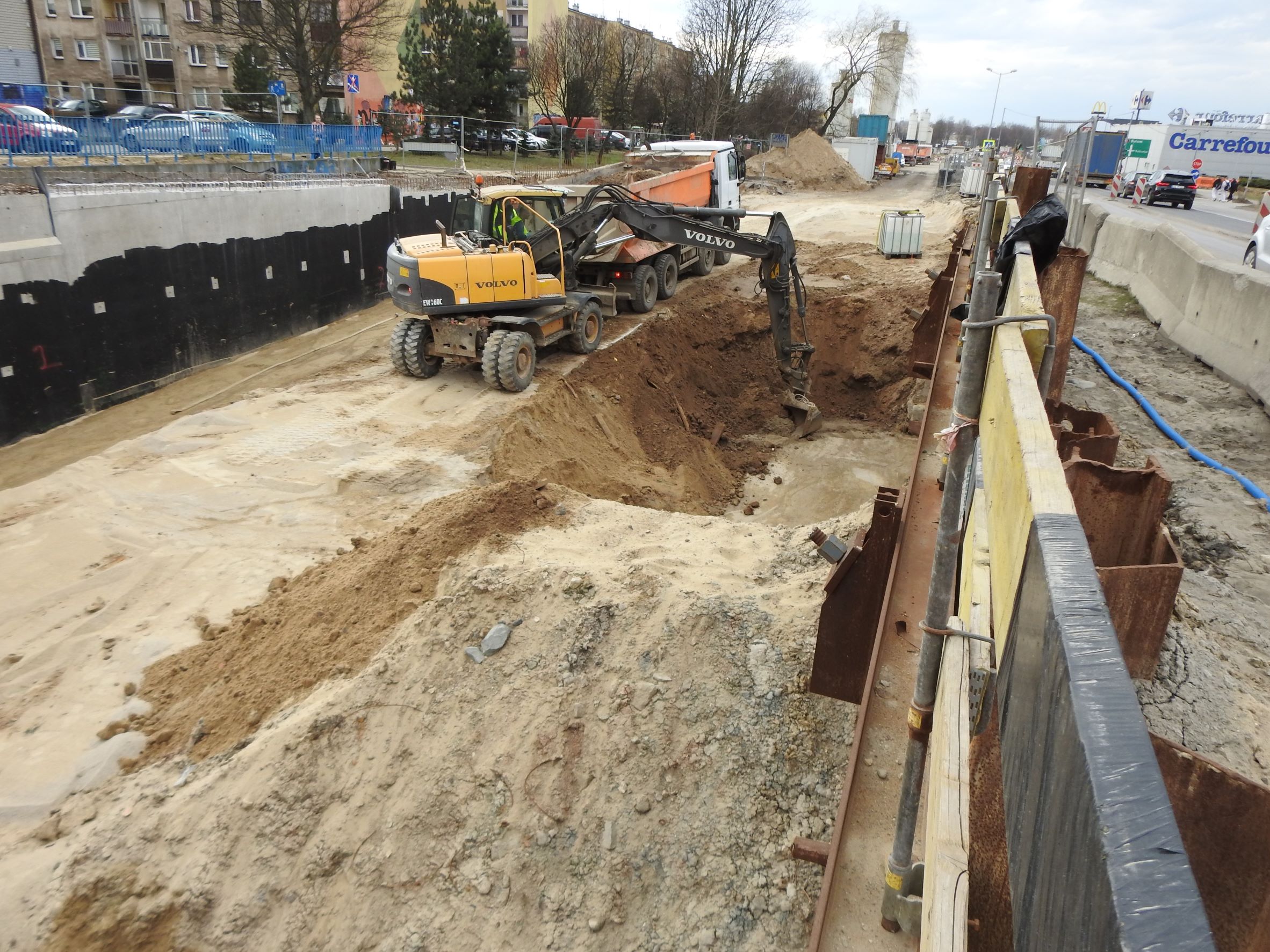 Przygotowywano nową sieć wodociągową, deszczową i gazową. Wykonano też częściowo infrastrukturę teletechniczną i energetyczną. Budowano mur oporowy, który powstaje przy skrzyżowaniu ul. Kościuszki i Rabsztyńskiej z DK94. Trwały prace w zakresie przygotowania dwóch przejść podziemnych. Tłoczono specjalną mieszankę cementową wypełniającą pustki krasowe, znajdujące się głęboko pod powierzchnią. Jak dotąd wykorzystano jej 53 tys. m³.