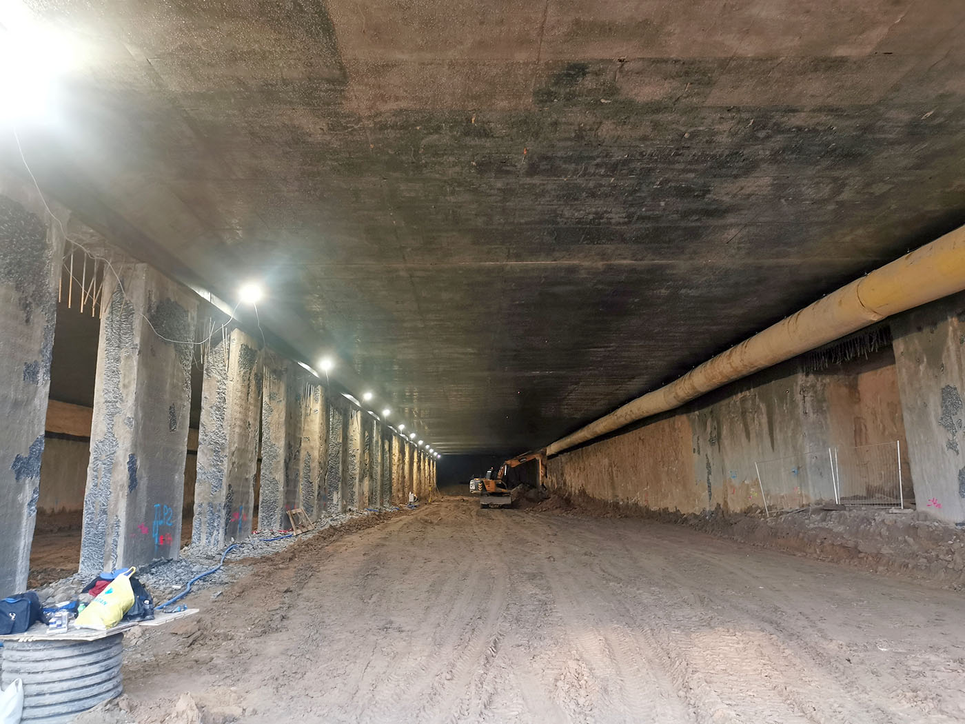 Prawie 500-metrowy tunel w Batowicach ma wykonane ściany szczelinowe oraz płytę stropową. Kontynuowany jest wykop podstropowy. Dotychczas wykopano około 46 000 m3 materiału ziemnego, czyli ponad połowę materiału, który należy usunąć. Zakończenie tych robót przewidziane jest na koniec maja 2022 r. Rozpoczęło się już wykonywanie betonów podkładowych pod płytę denną tunelu.