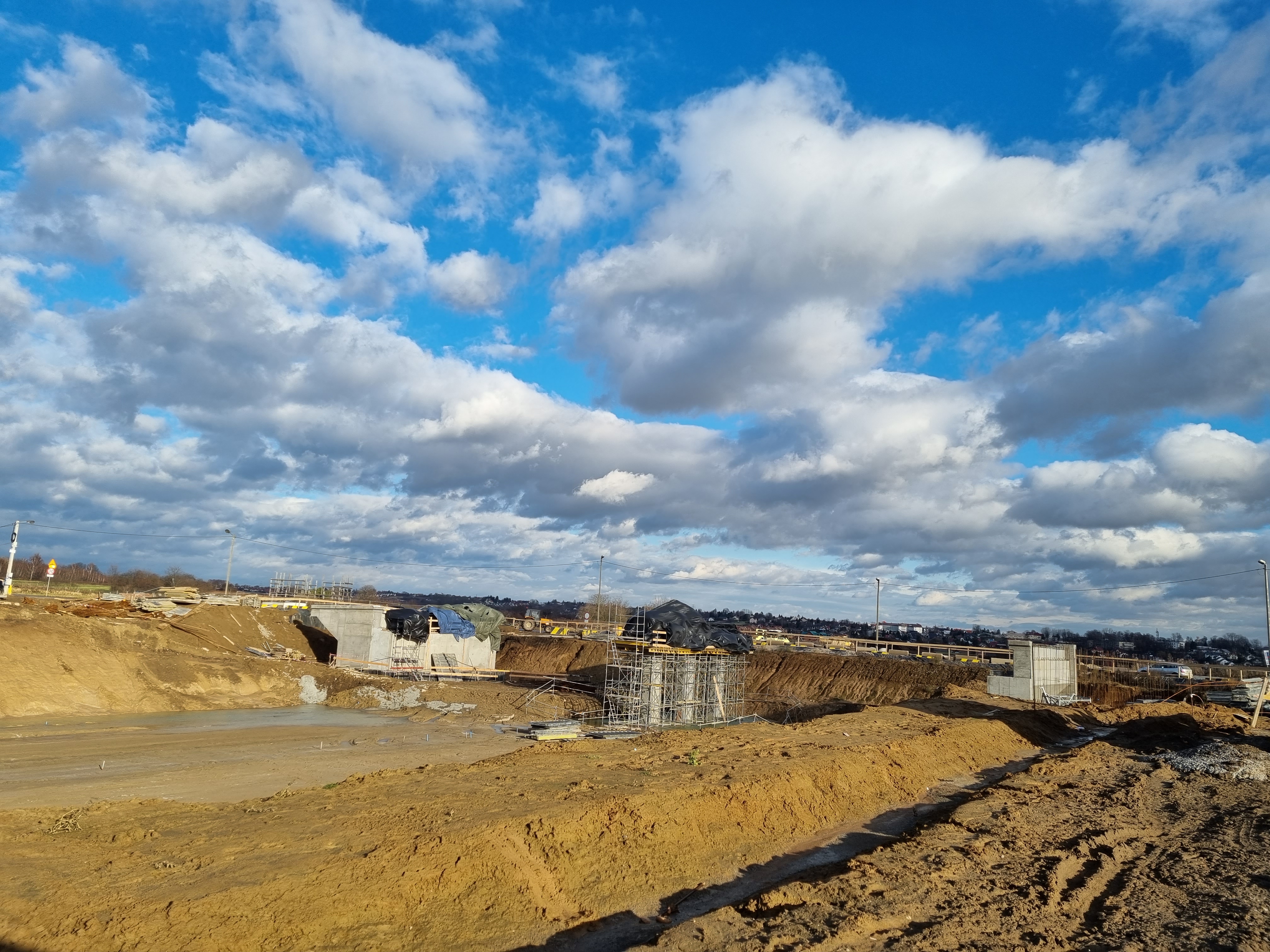 Przy sprzyjających warunkach atmosferycznych trwają prace na budowie drogi ekspresowej S52 Północnej Obwodnicy Krakowa. Są to głównie prace mostowe, ale w ograniczonym zakresie robione są także wykopy.