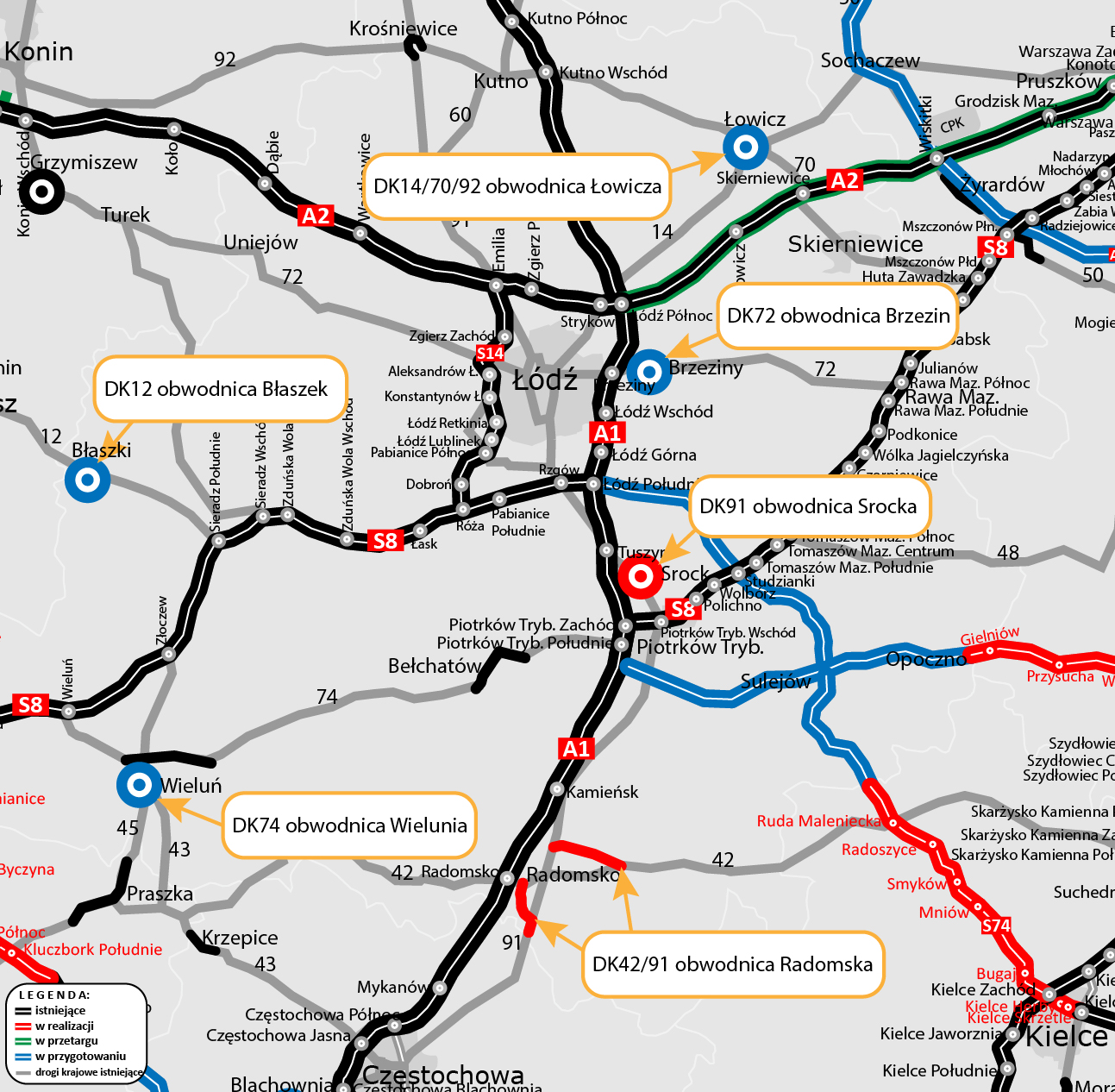 Końcówka roku oraz początek stycznia przyniosły kilka kluczowych decyzji, które znacząco przybliżają nas do budowy obwodnic Srocka, Łowicza, Błaszek i Radomska. Na jakich jesteśmy etapach?