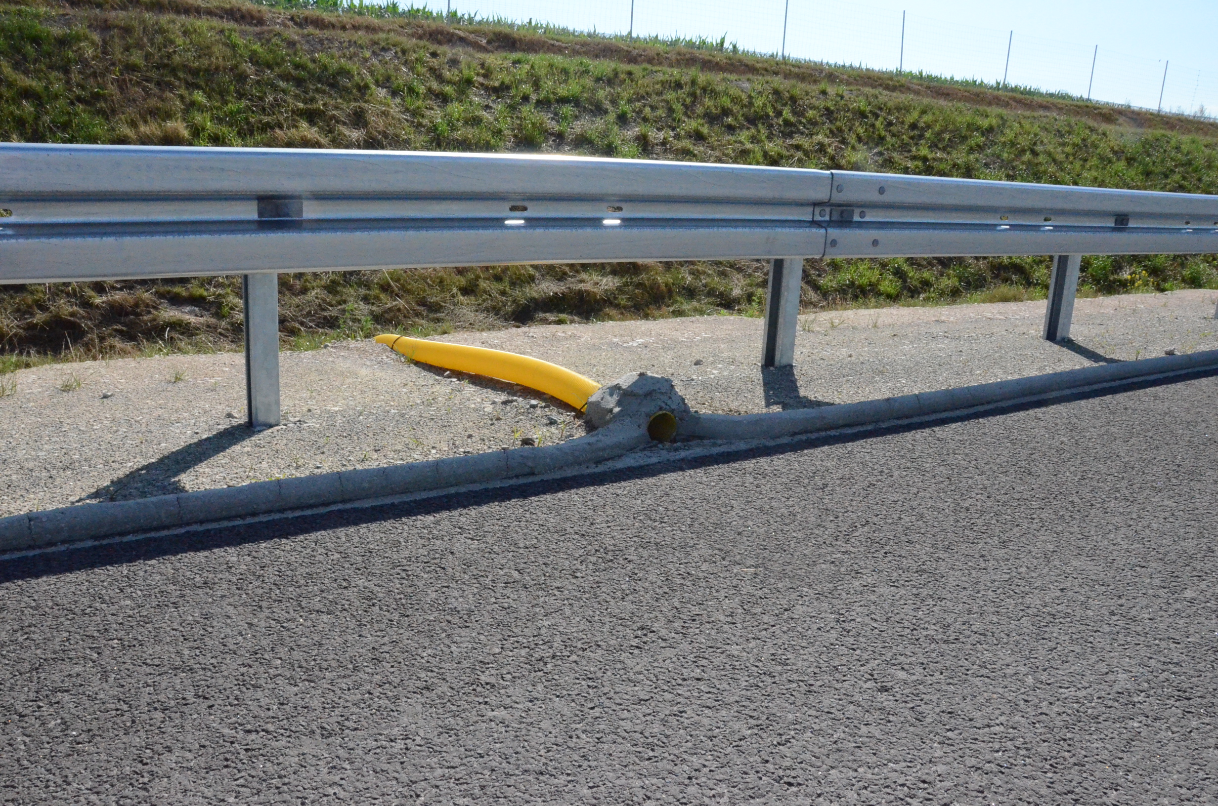 W brewkach - co kilkanaście, kilkadziesiąt metrów - umieszczone są elastyczne rury, zazwyczaj w kolorze żółtym, którymi woda spływa bezpośrednio na dno rowu odwadniającego. Ten prosty mechanizm chroni skarpę przed rozmywaniem.