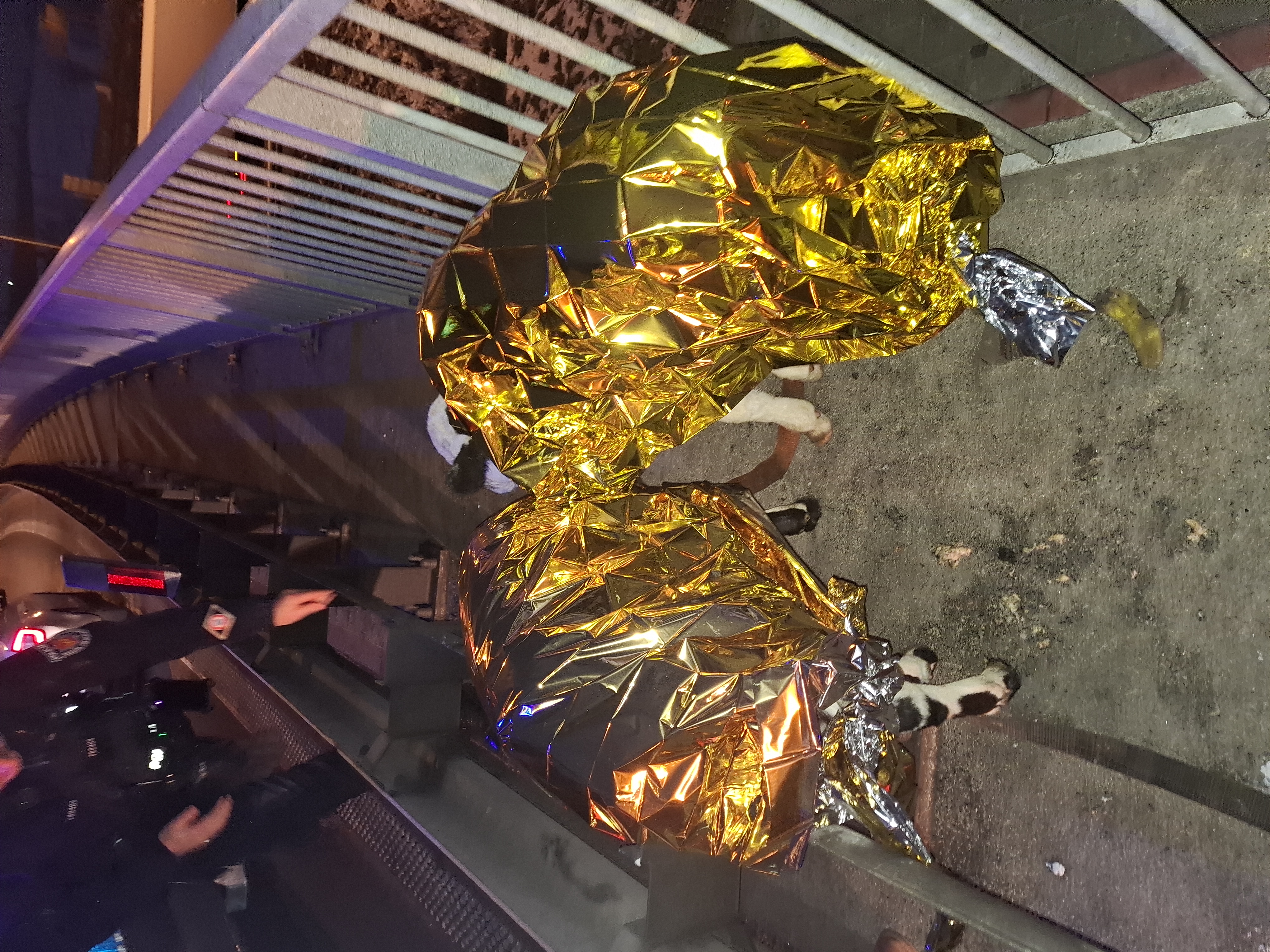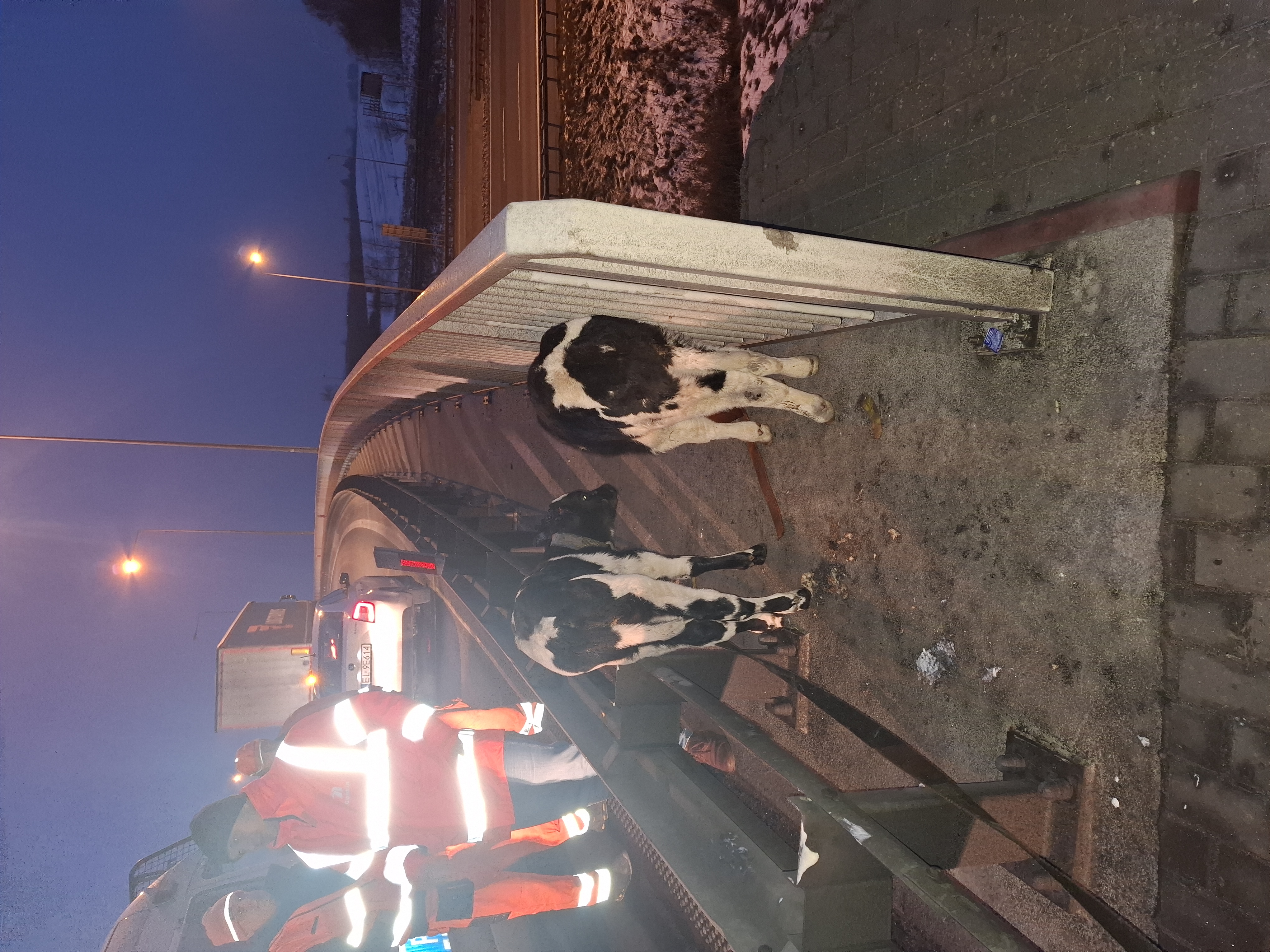 Wkrótce na miejscu pojawiły się służby #GDDKiA oraz Policja, które przejęły opiekę nad cielakami. To właśnie funkcjonariusze i pracownicy służby drogowej okryli zwierzęta kocami termicznymi, by je ogrzać i zmniejszyć stres do czasu przyjazdu weterynarza. Z pełną empatią i profesjonalizmem zadbali o bezpieczeństwo zarówno zwierząt, jak i kierowców.