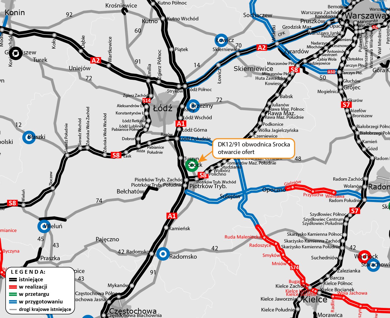 Obwodnica Srocka jest jedną z pięciu objętych Programem budowy 100 obwodnic na lata 2020-2030 w woj. łódzkim. W przypadku pozostałych obwodnic (Błaszek w ciągu DK12, Brzezin w ciągu DK72, Łowicza w ciągu DK14/70/92 oraz Wielunia w ciągu DK45) jesteśmy na etapie uzyskiwania decyzji środowiskowych. Dla Błaszek, Wielunia i Brzezin ma to nastąpić jeszcze w tym roku, a w przypadku Łowicza w drugiej połowie 2025 roku.
