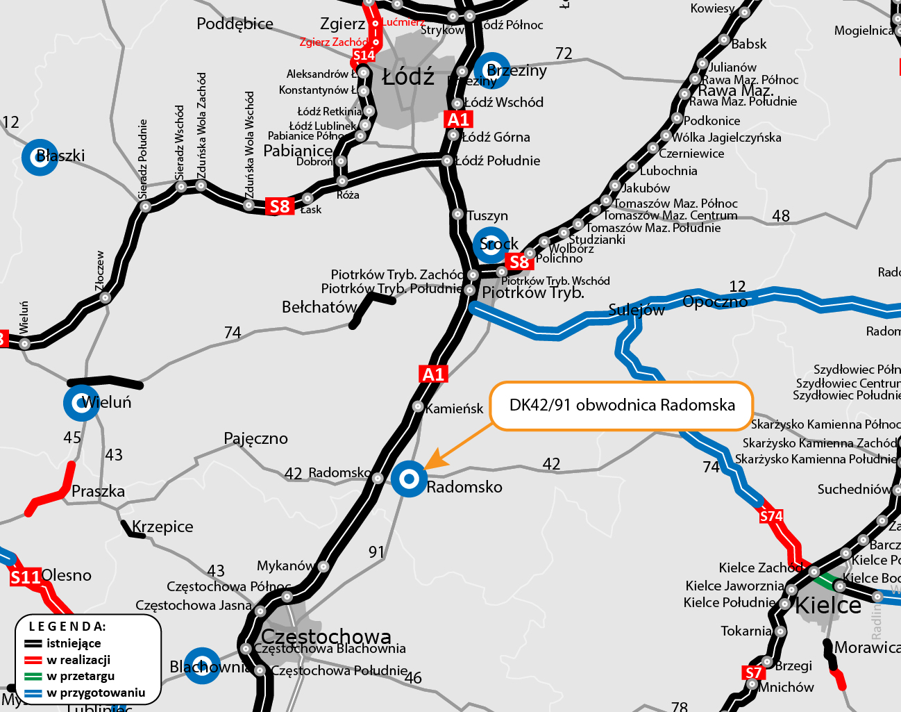 Celem inwestycji jest wyprowadzenie z zatłoczonego Radomska ruchu tranzytowego, zarówno ciężkiego, jak i osobowego. Należy tu podkreślić, że w ścisłym centrum miasta krzyżują się dwie drogi krajowe: DK42 i DK91, co generuje duży ruch. Obwodnica nie tylko poprawi więc warunki życia mieszkańców, ale wpłynie też znacząco na wzrost poziomu bezpieczeństwa.