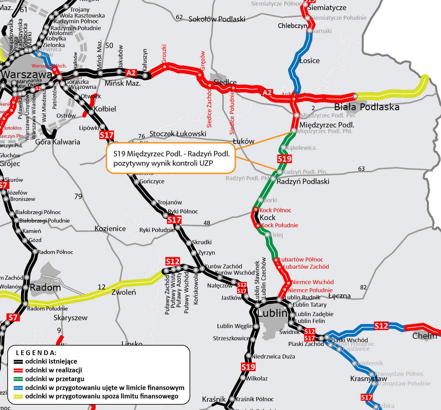 Pozytywnym wynikiem zakończyła się standardowa, uprzednia kontrola przetargu na realizację drogi ekspresowej S19 od Międzyrzeca Podlaskiego do Radzynia Podlaskiego, którą przeprowadził Prezes Urzędu Zamówień Publicznych. Kolejnym krokiem, po przedstawieniu przez wykonawcę gwarancji należytego wykonania robót, będzie podpisanie umowy.