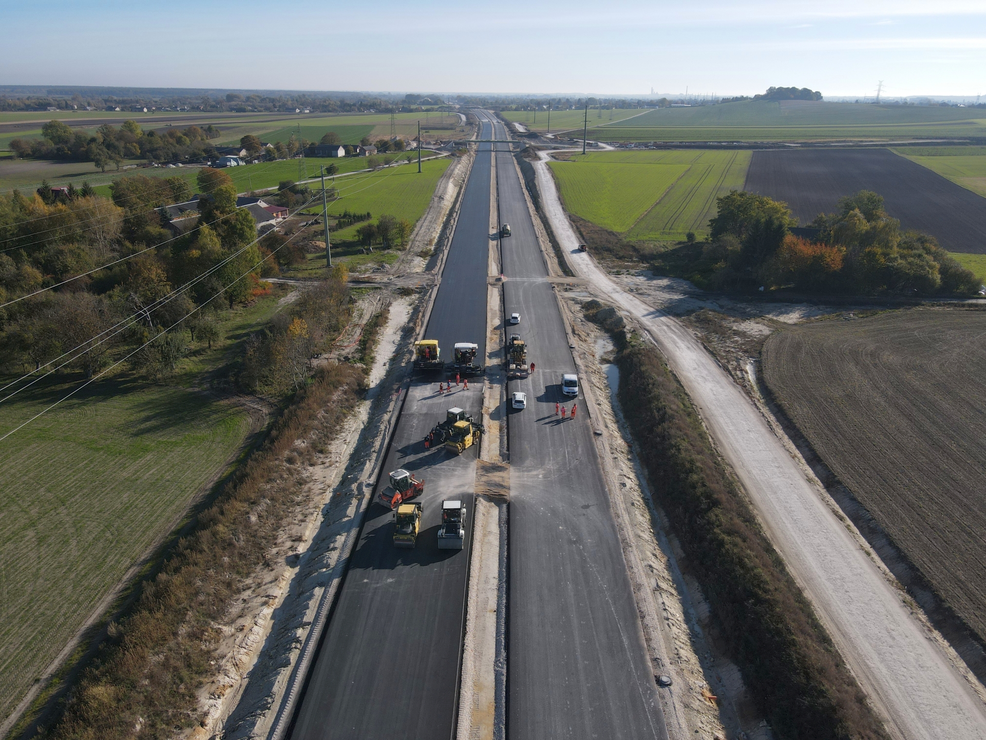 Najbardziej zaawansowane roboty prowadzone są na fragmencie od węzła Chełm Zachód w kierunku m. Horodyszcze i Okszów. Efekty prac najlepiej widać na odcinku ok. 4,5 km, gdzie nawierzchnia jest już czarna. Wykonawca jest tu na etapie układania masy bitumicznej, w tym warstwy podbudowy z mieszkanki mineralno-asfaltowej. Na dalszym fragmencie w kierunku m. Srebrzyszcze, gdzie zaplanowany jest węzeł Chełm Wschód, trwają prace ziemne, ulepszane jest podłoże pod trasę główną i trwa przebudowa sieci podziemnych, w tym m.in. sieci wodociągowej. Postępuje także budowa obiektów mostowych, która zaawansowana jest w ok. 60 proc.