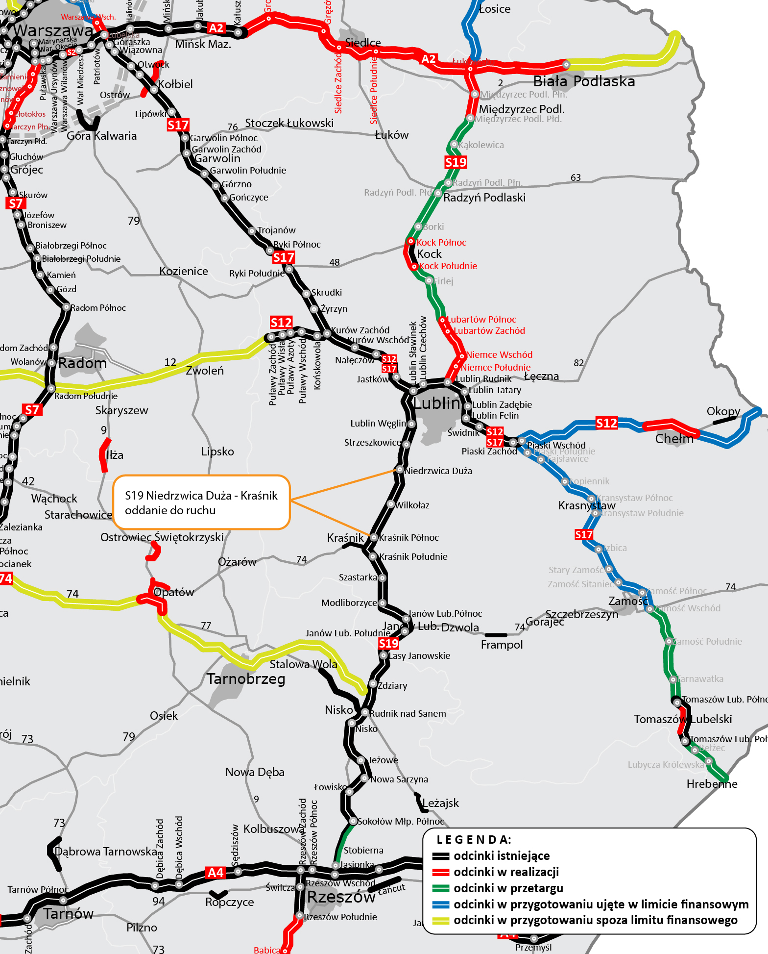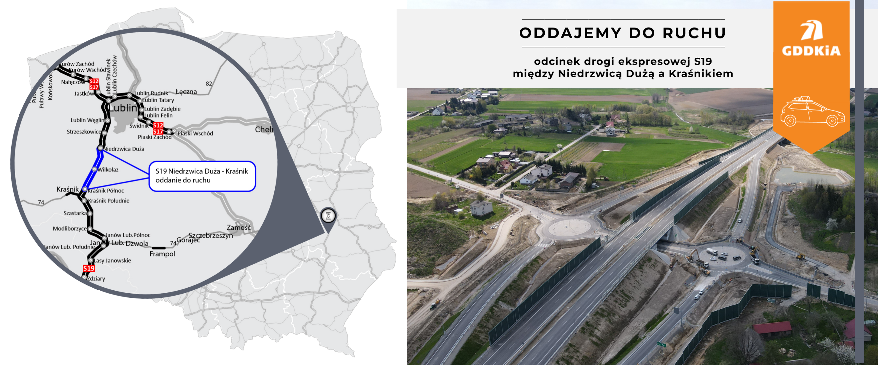 Przed tegorocznym weekendem majowym udostępniliśmy odcinek z mostem na Sanie, Zdziary - Rudnik nad Sanem. Teraz oddaliśmy do ruchu ostatni element trasy S19 Lublin - Rzeszów, czyli ok. 20 km między Niedrzwicą Dużą a Kraśnikiem.