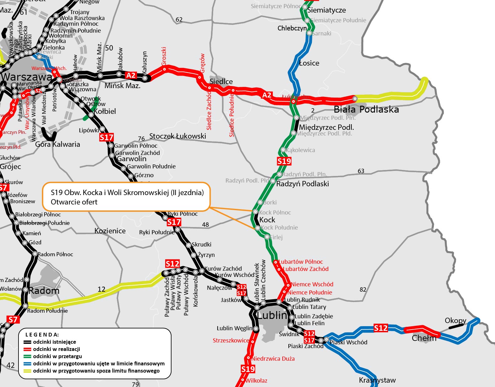 Budowa dwujezdniowej drogi ekspresowej S19 od granicy woj. lubelskiego z woj. mazowieckim do Lublina podzielona została sześć odcinków o łącznej długości ok. 100 km. Odcinek Lubartów - Lublin wybuduje firma Mota Engil Central Europe. Wykonawca jest na etapie opracowywania projektu budowlanego i materiałów do uzyskania decyzji o zezwoleniu na realizację inwestycji drogowej (ZRID).