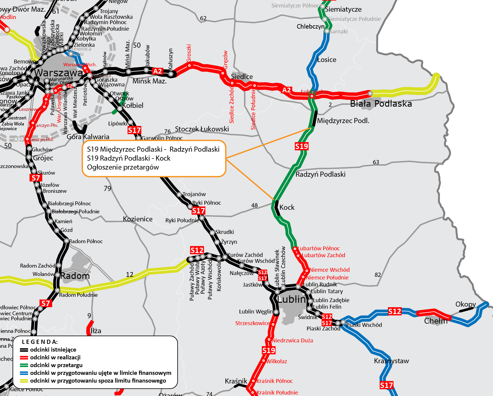 To kolejny i zarazem ostatni z zaplanowanych przetargów dla S19 od granicy woj. mazowieckiego i lubelskiego do Lublina. Ostatnio ogłosiliśmy przetarg na wyłonienie wykonawcy ok. 14-kilometrowego odcinka między gr. woj. lubelskiego oraz mazowieckiego a Międzyrzecem Podlaskim (wraz z dobudową drugiej jezdni obwodnicy Międzyrzeca Podlaskiego).