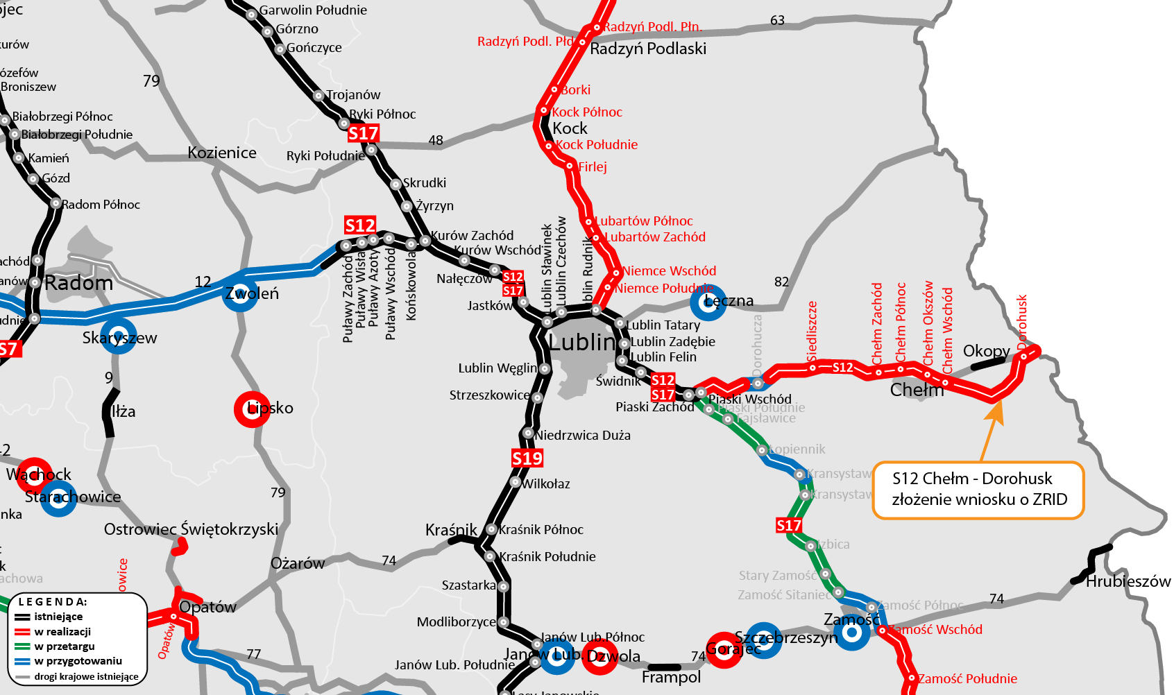 Do Wojewody Lubelskiego trafił wniosek o wydanie decyzji o zezwoleniu na realizację inwestycji drogowej (ZRID) dla drogi ekspresowej S12 na odcinku Chełm - Dorohusk. Po wydaniu decyzji będą mogły rozpocząć się prace budowlane.