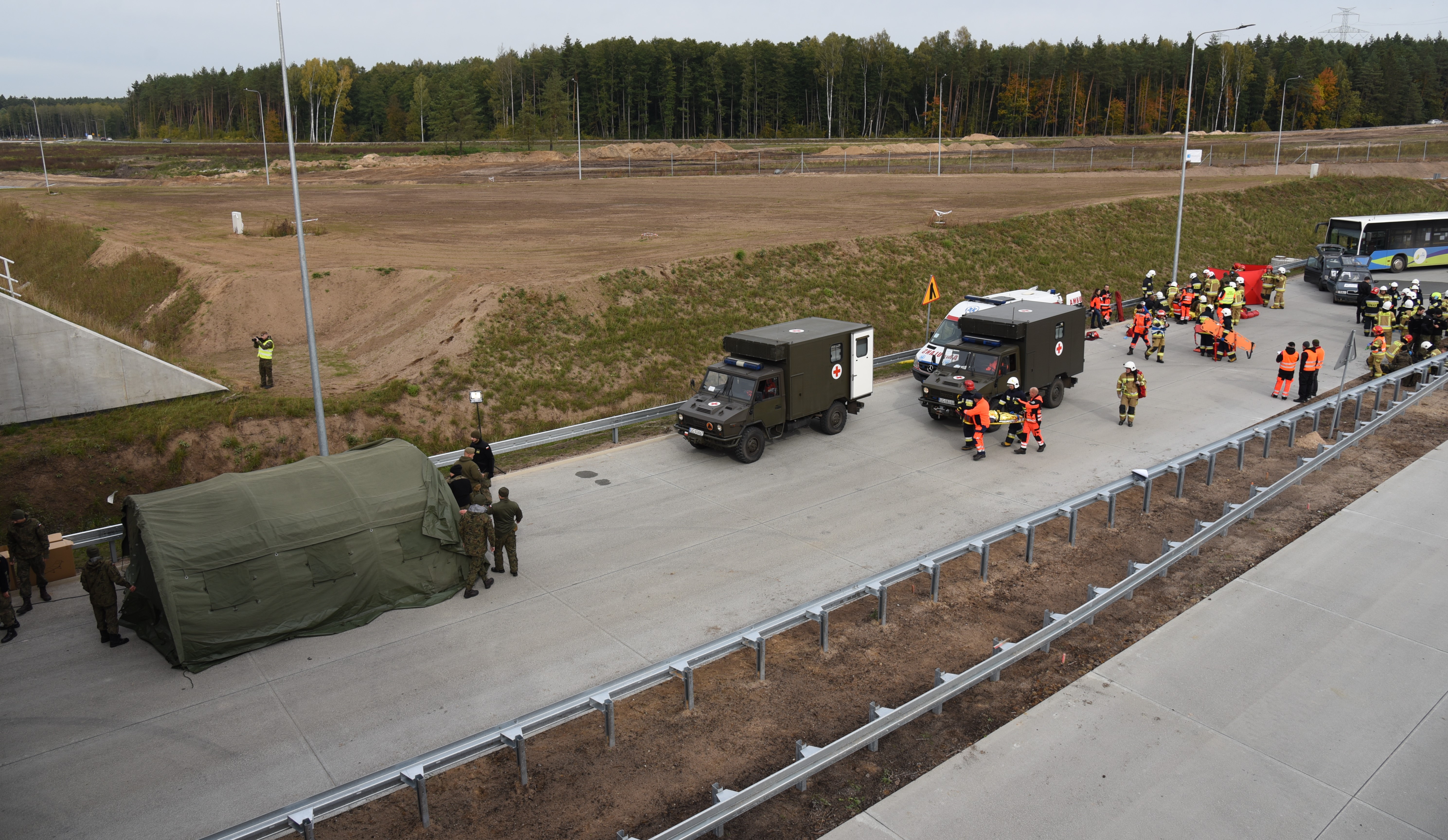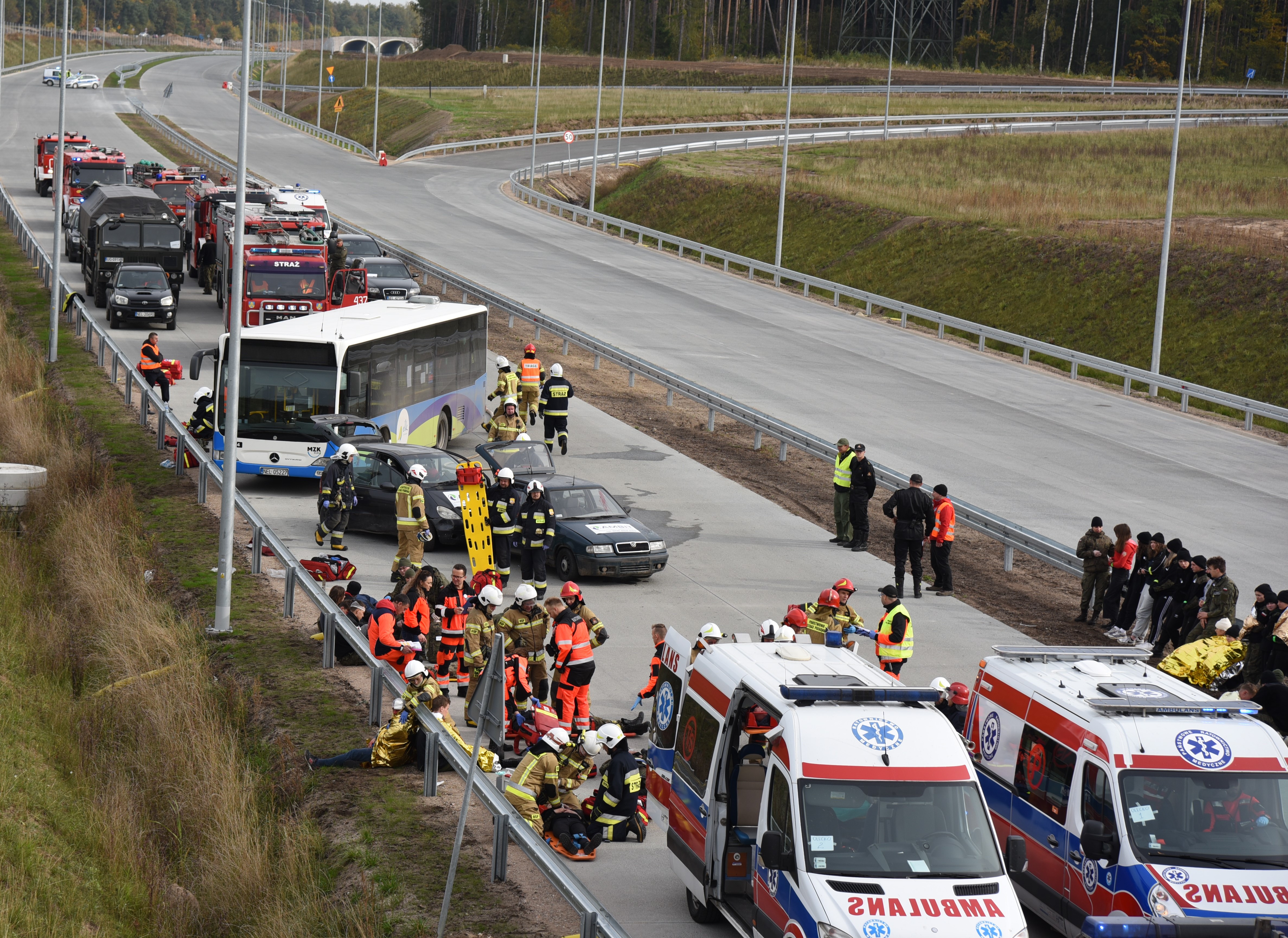 Ćwiczenia służb ratunkowych na S61 w okolicy Ełku