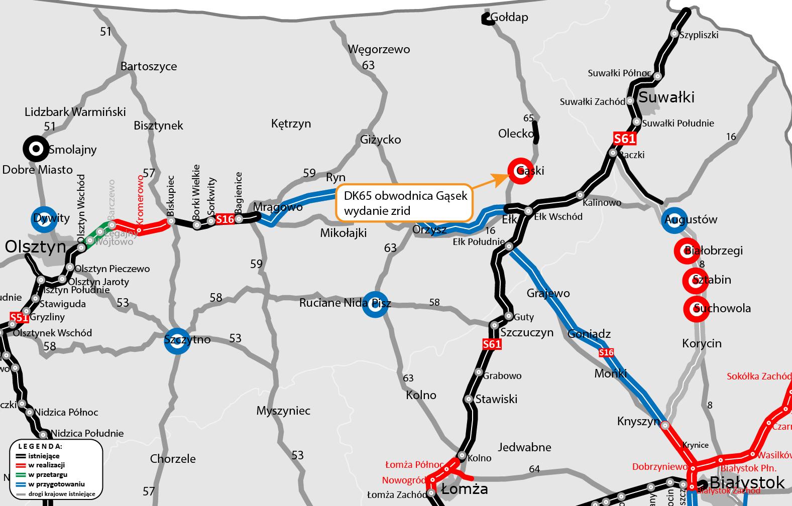 Wojewoda Warmińsko-Mazurski wydał decyzję o zezwoleniu na realizację inwestycji drogowej (ZRID) dla obwodnicy Gąsek. Oznacza to, że 2 września przekażemy wykonawcy teren budowy. Roboty budowlane wraz z uzyskaniem decyzji o pozwoleniu na użytkowanie powinny zostać ukończone w II kwartale 2027 roku.