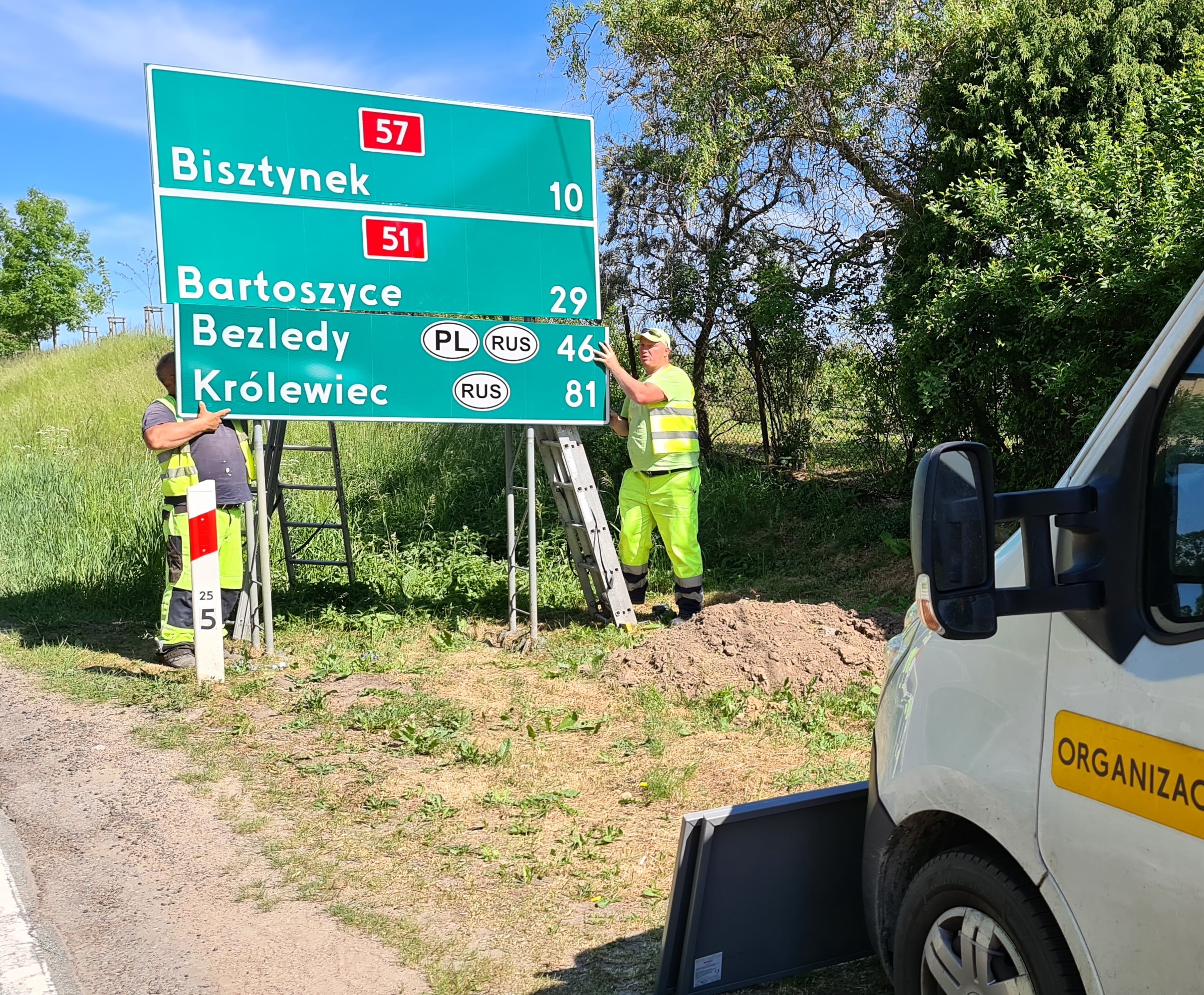 Rozpoczęliśmy wymianę znaków z nazwą Kaliningrad na znaki kierujące do Królewca. Dziś wymieniamy tablice przy drodze krajowej nr 51 w Dywitach i Dobrym Mieście oraz w Wozławkach i Lutrach przy drodze krajowej nr 57. Kolejne wymienimy do połowy czerwca. Łącznie zmienimy treść 26 znaków.