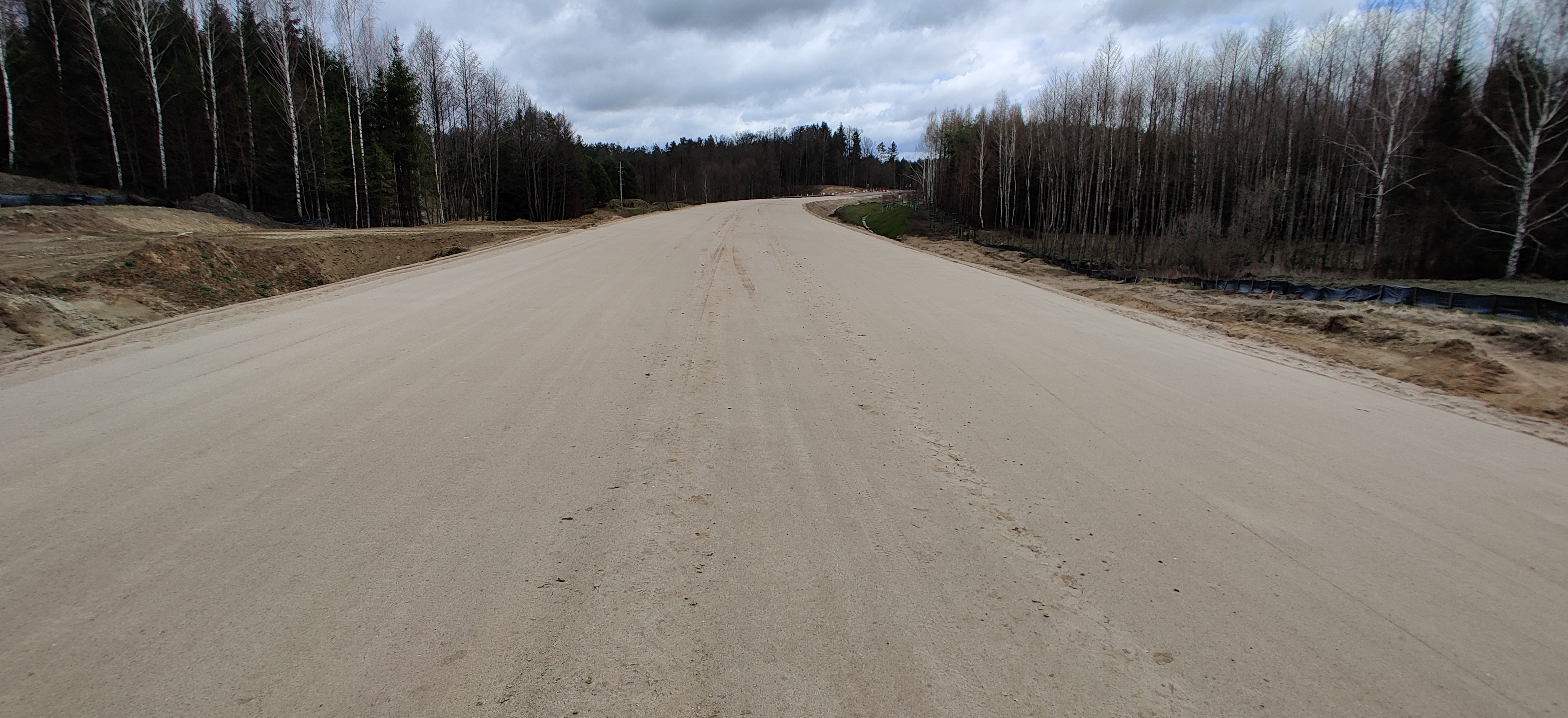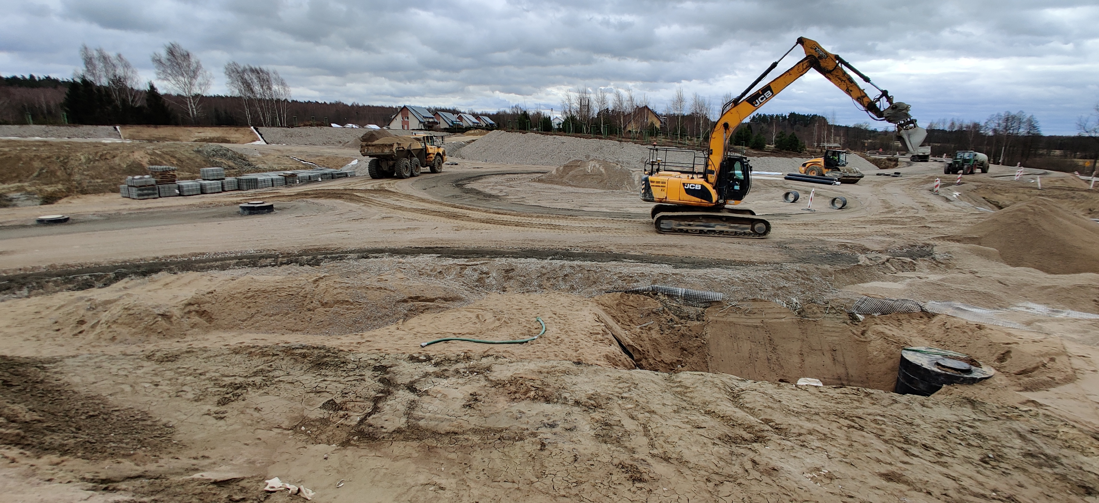 Na budowie obwodnicy Smolajn roboty ziemne zostały zakończone w ciągu drogi głównej, a wykonane muszą jeszcze zostać na dwóch jezdniach dodatkowych. Aktualnie budowana jest górna warstwa nasypu w ciągu drogi głównej oraz podbudowa pomocnicza z mieszanki związanej cementem C3/4, na której będzie wykonywana konstrukcja nawierzchni, czyli podbudowa zasadnicza oraz warstwy bitumiczne. Trwa sadzenie drzew, budowa oświetlenia drogowego oraz kanalizacji deszczowej. Równolegle są prowadzone roboty brukarskie na rondzie oraz zatoce autobusowej. Zaawansowanie robót na koniec marca wynosi ponad 46 proc.
